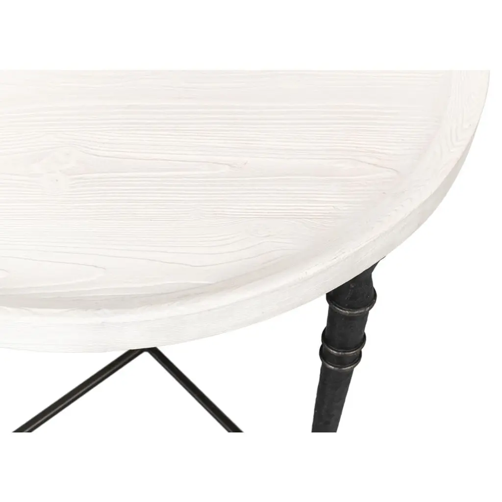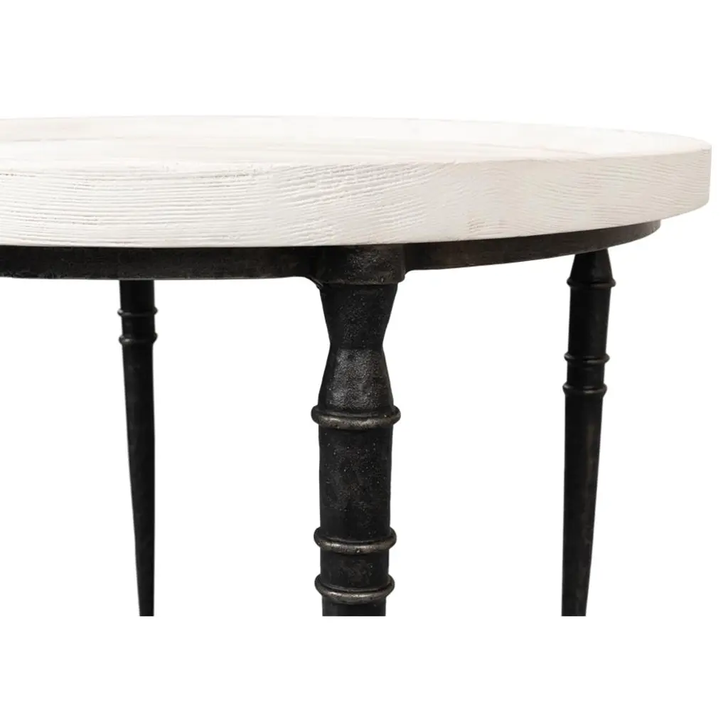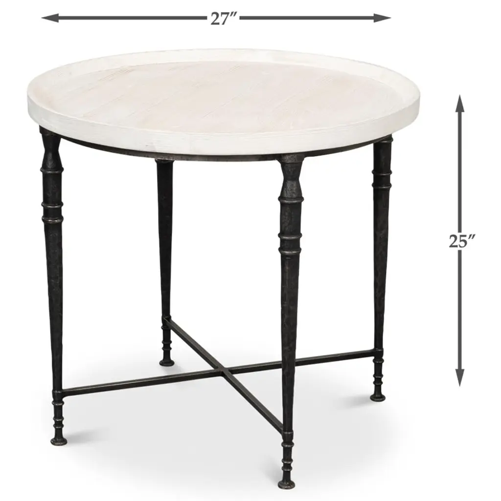 Daniel French Country Off White Pine Black Iron Round Side Table
