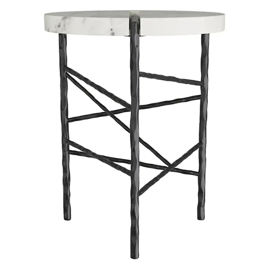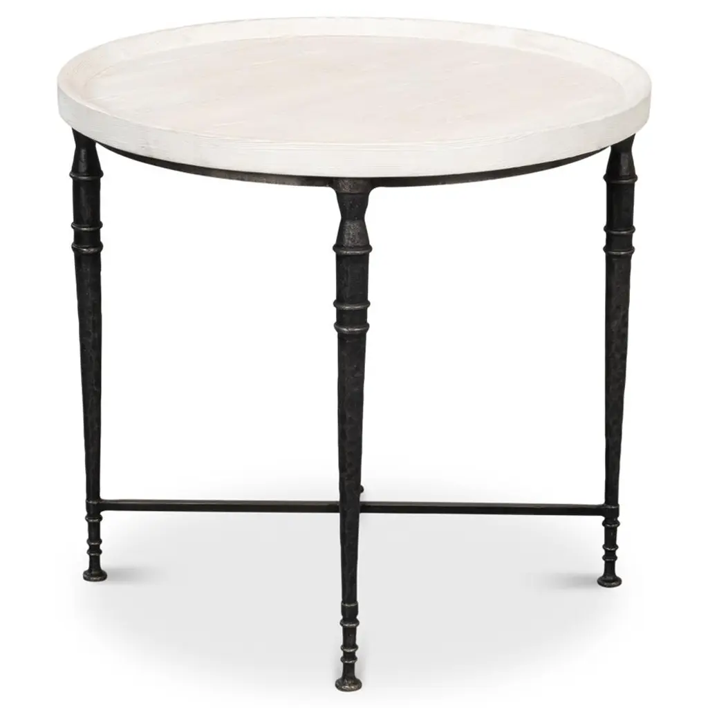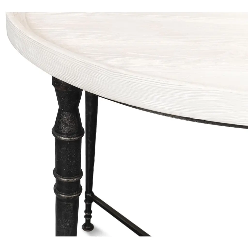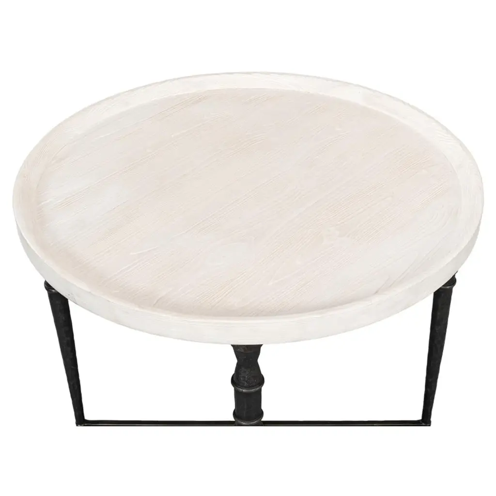 Daniel French Country Off White Pine Black Iron Round Side Table