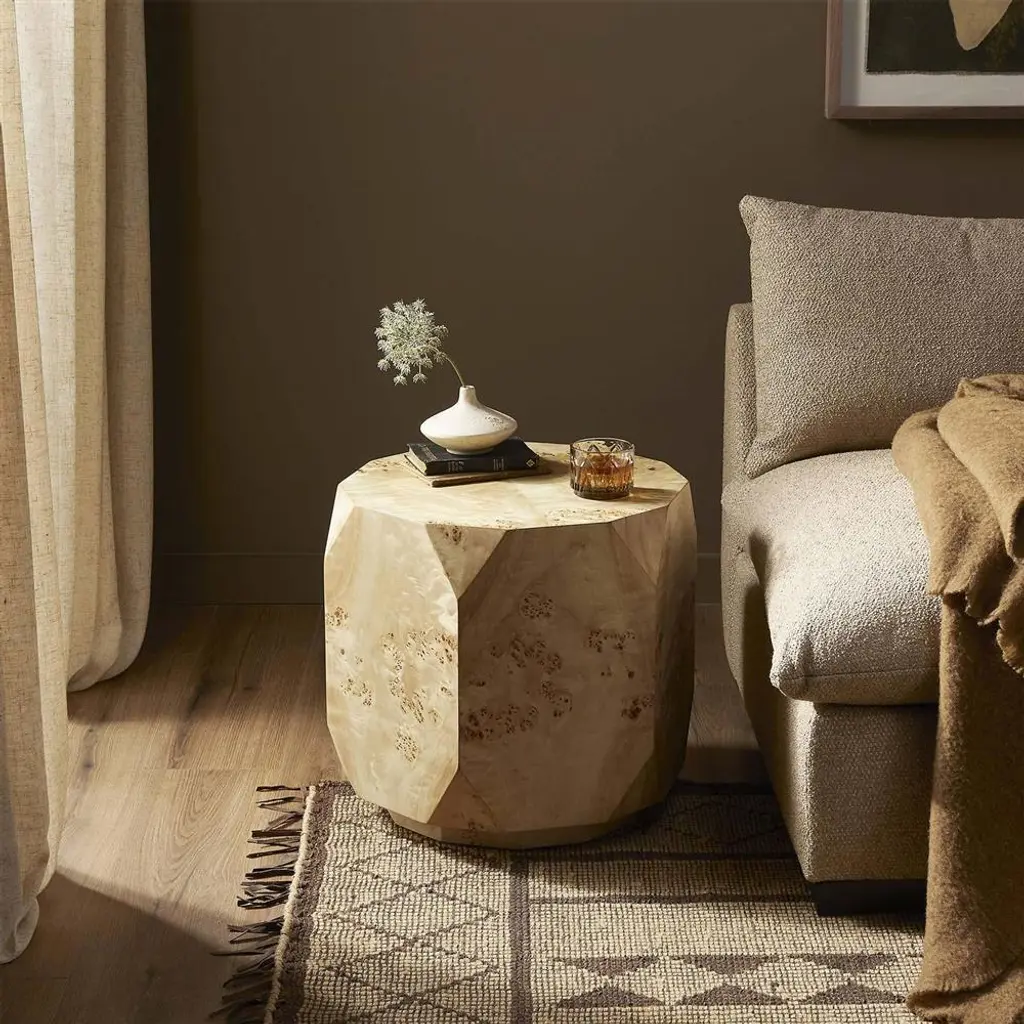 Daphne Modern Classic Light Brown Burl Wood End Table