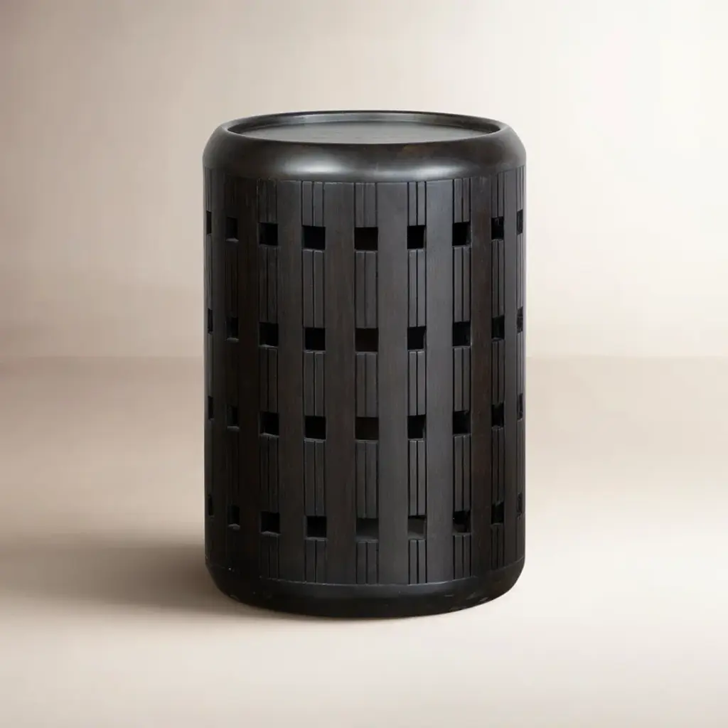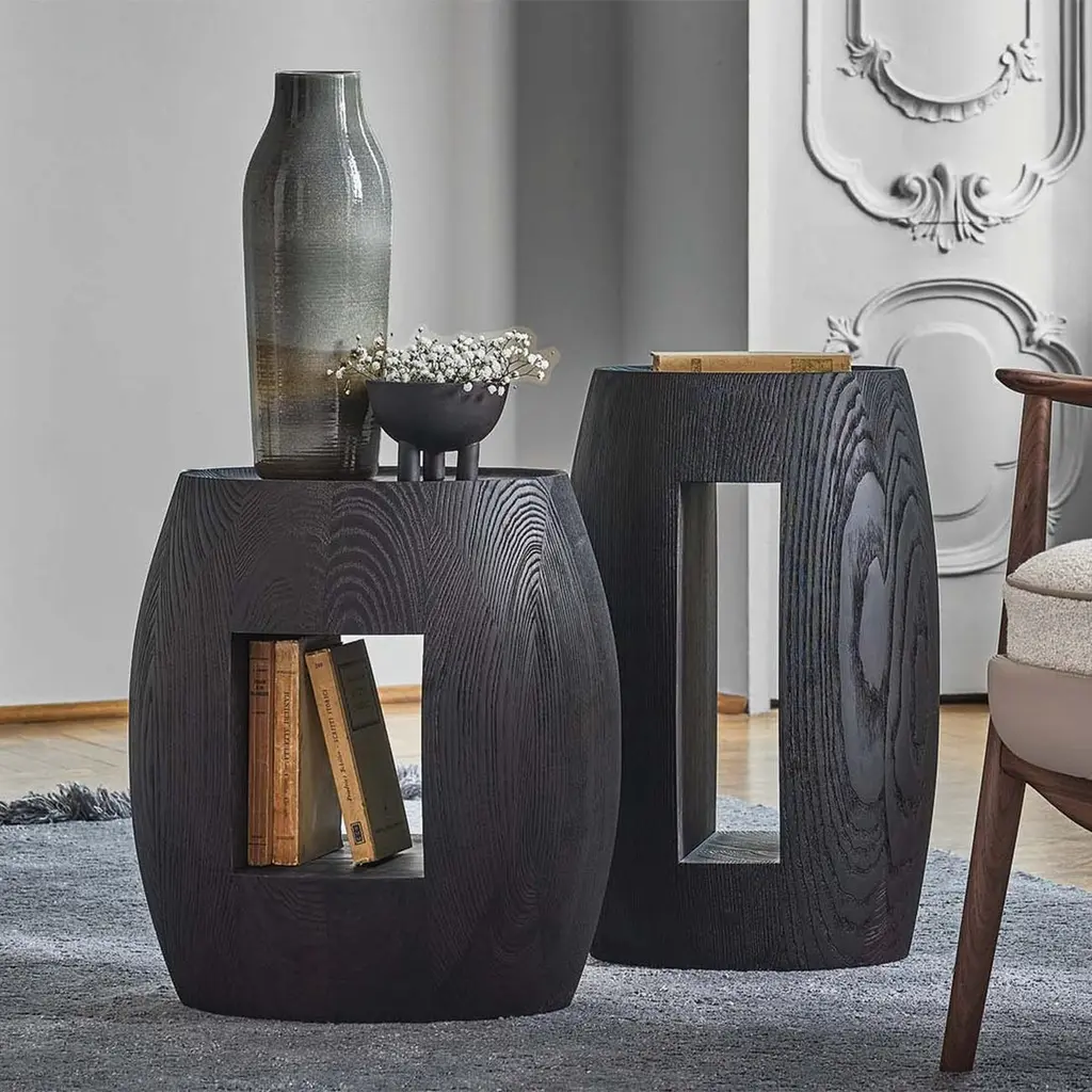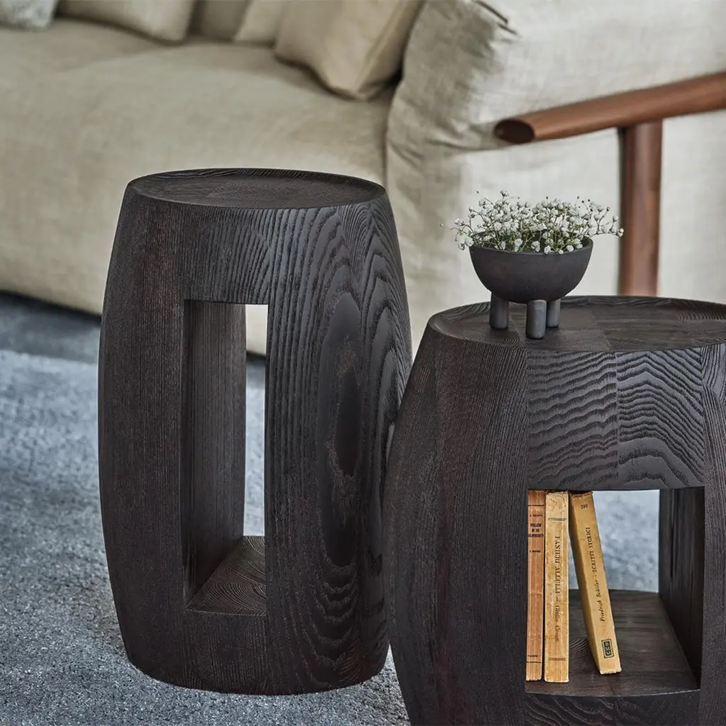 Side Table Dario High with all structure in solid ash wood in black stained finish.