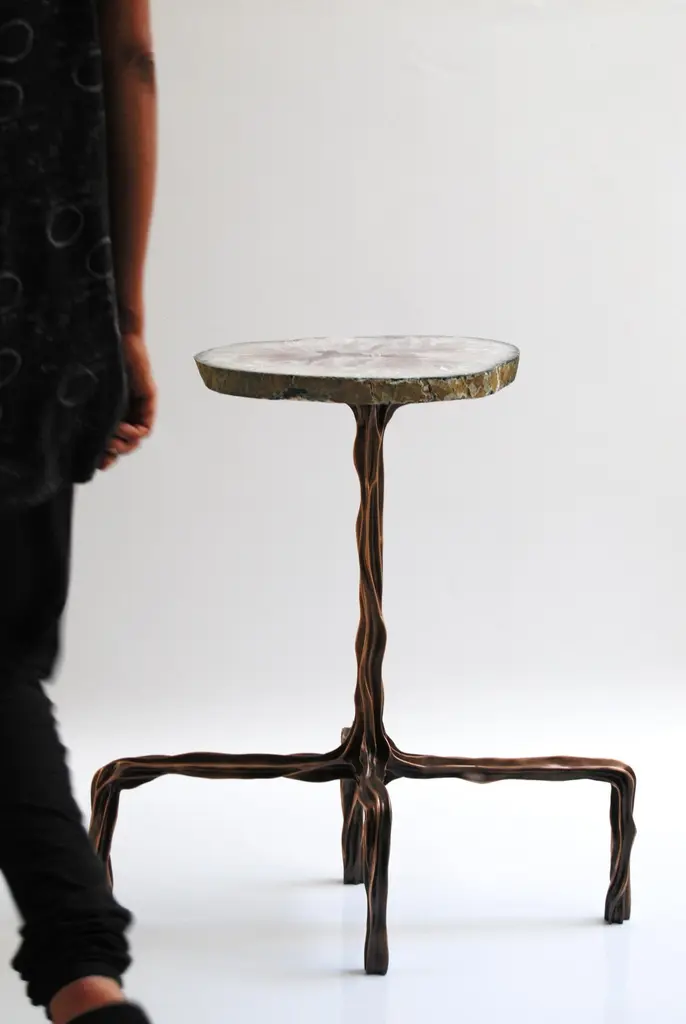 Dark Bronze Side Table With Agatha Top By Fakasaka Design