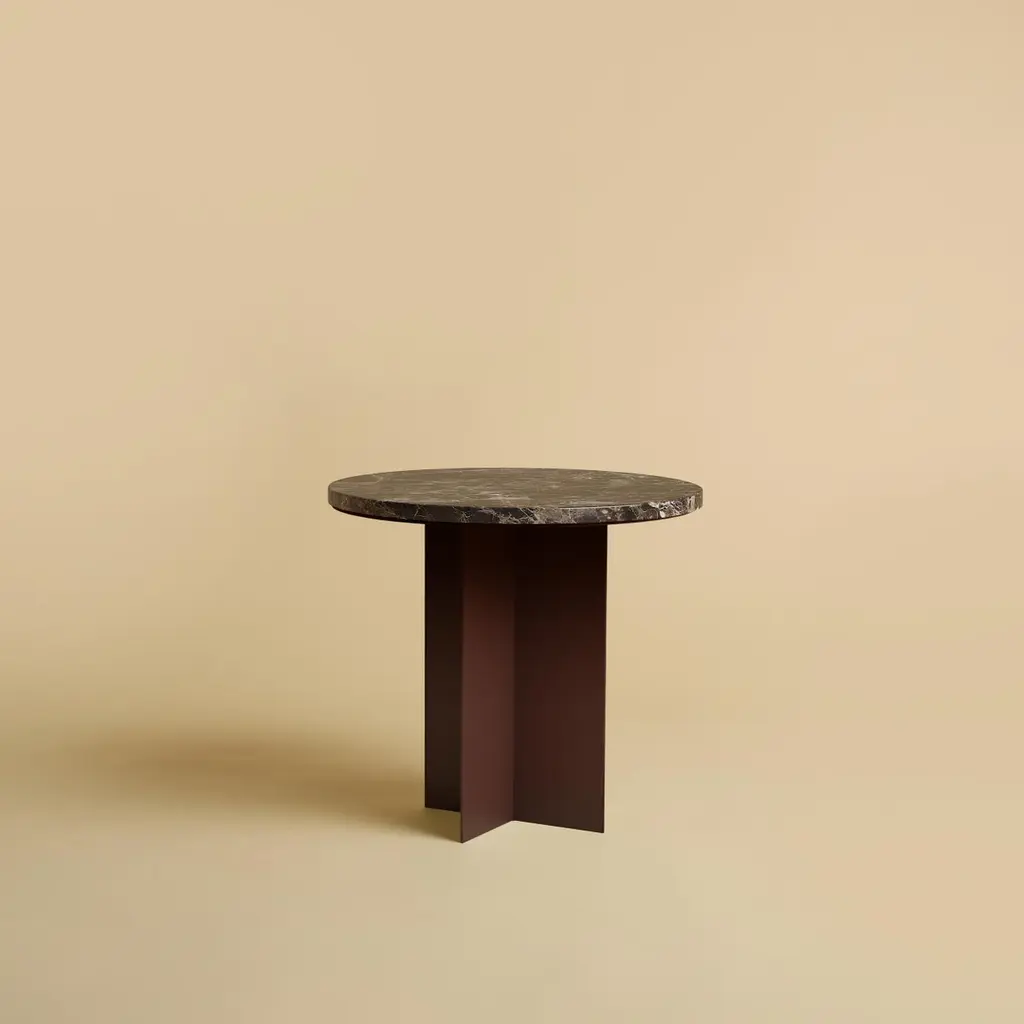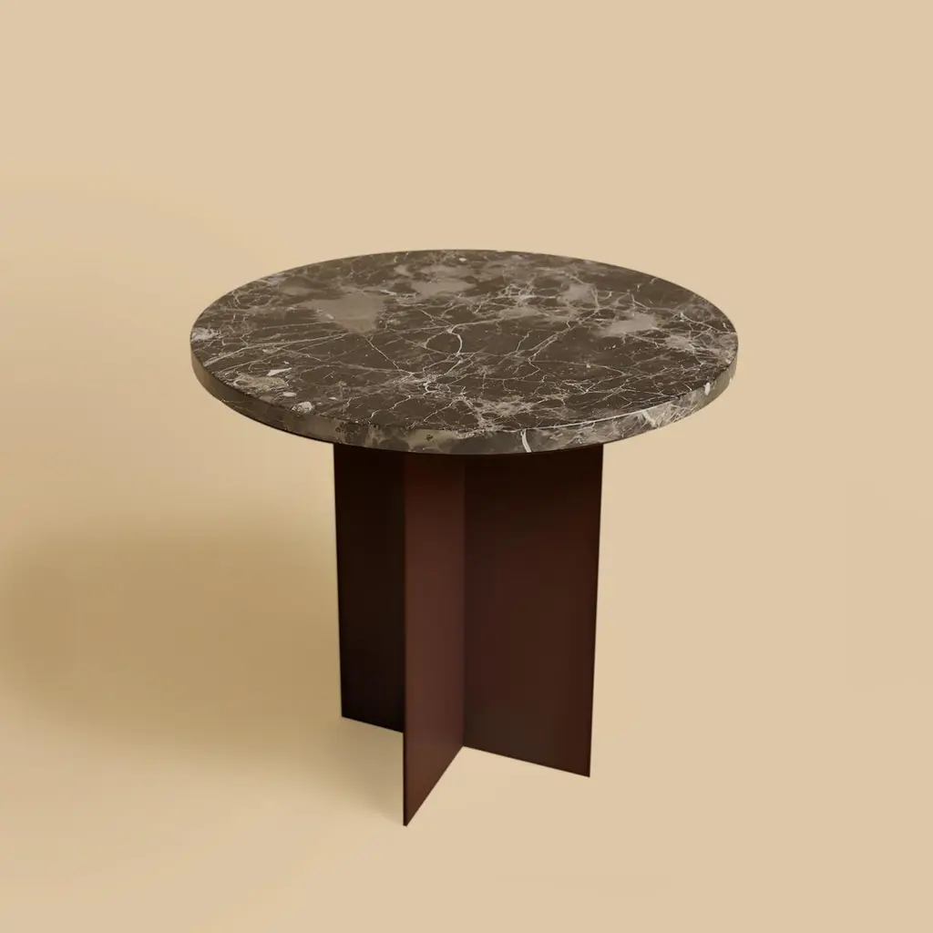 The Baker coffee table is produced with a powder-coated metal base and a top in Emperador Dark marble. The top is circular and has a diameter of 45cm, while the base is obtained by gluing metal plates perpendicular to each other.Elevate your space with the Baker Side Table, featuring a luxurious Emperador Dark marble top paired with sleek metal legs. This sophisticated piece blends modern design with timeless elegance, perfect for adding a touch of class to any room. Ideal as an accent table or a functional statement, the Baker Side Table offers both style and durability, making it a must-have addition to your home decor.The piece is designed by Lebanto and is Made in Italy in small familiar workshop. Attention to details and superior material is what distinguish Lebanto products.