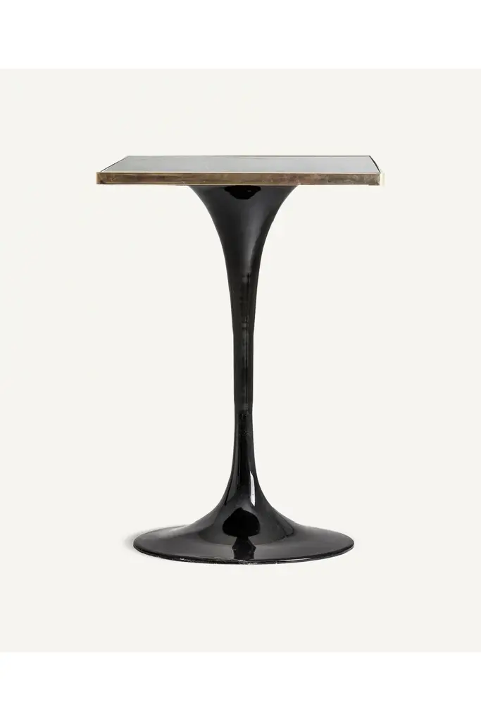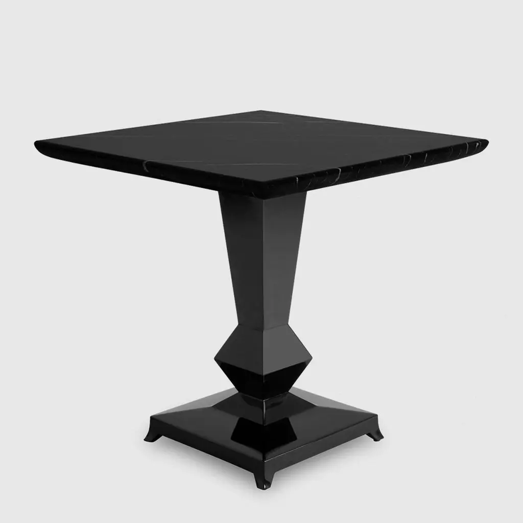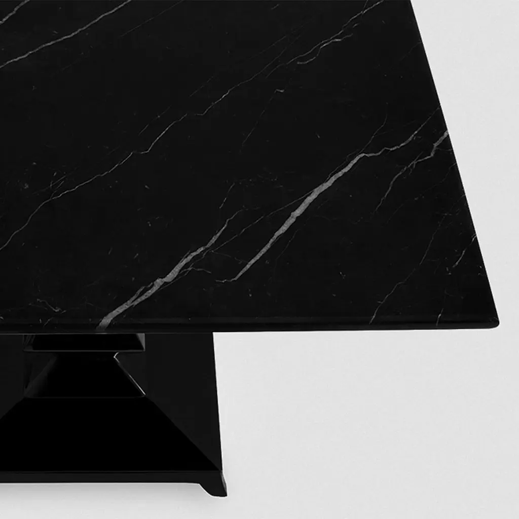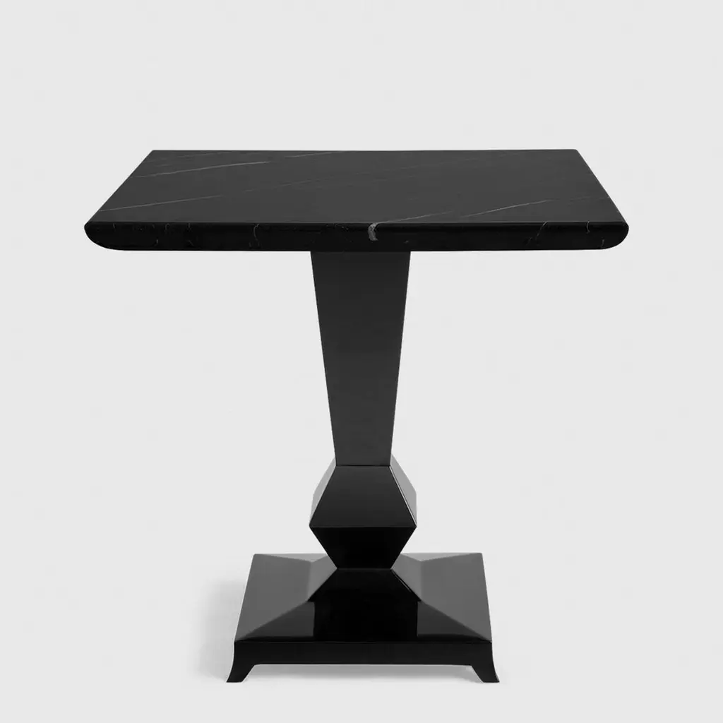 Side table dark marble with solid mahoganywood base in black lacquered finish. With soliblack marble top Nero Marquina.