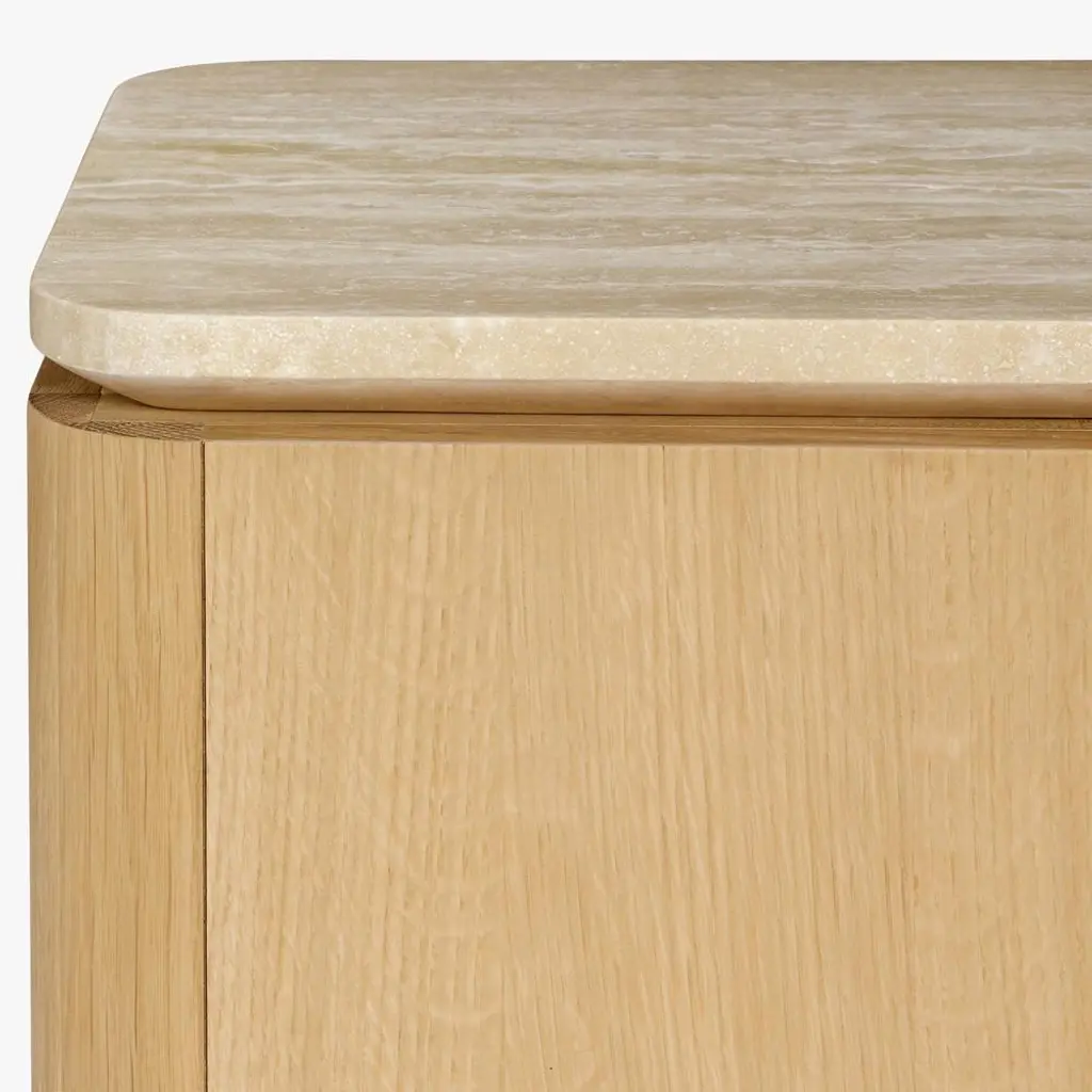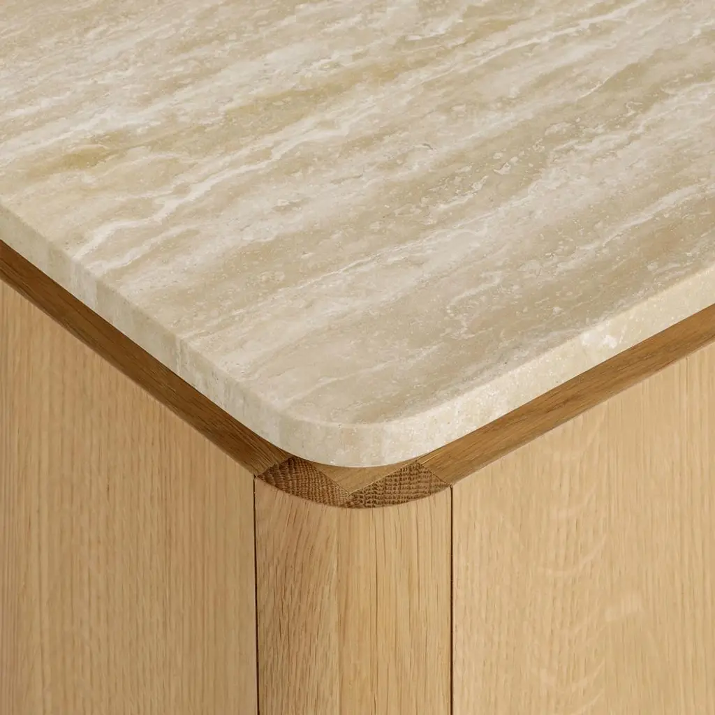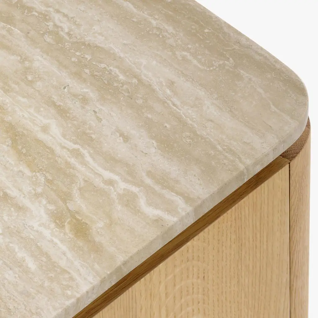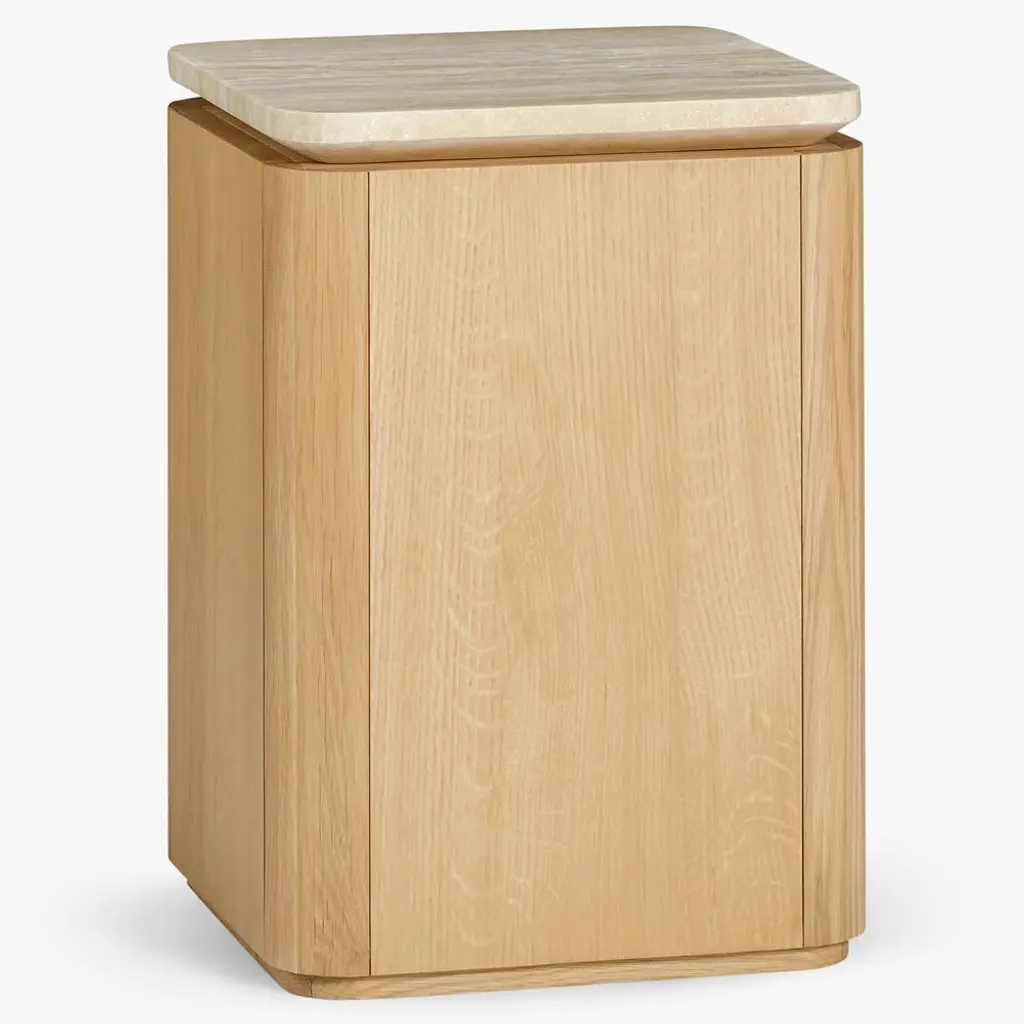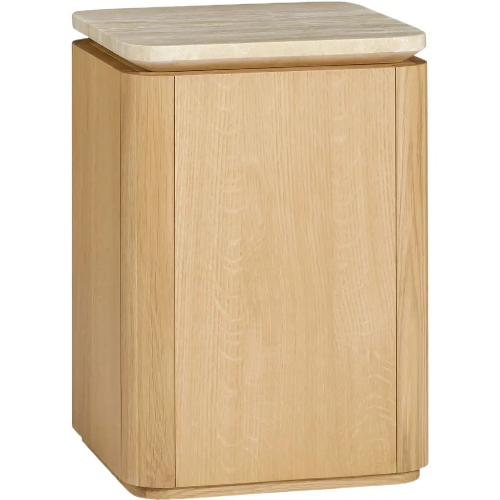 Darwin Modern Classic Travertine Light Brown Oak Wood Side Table