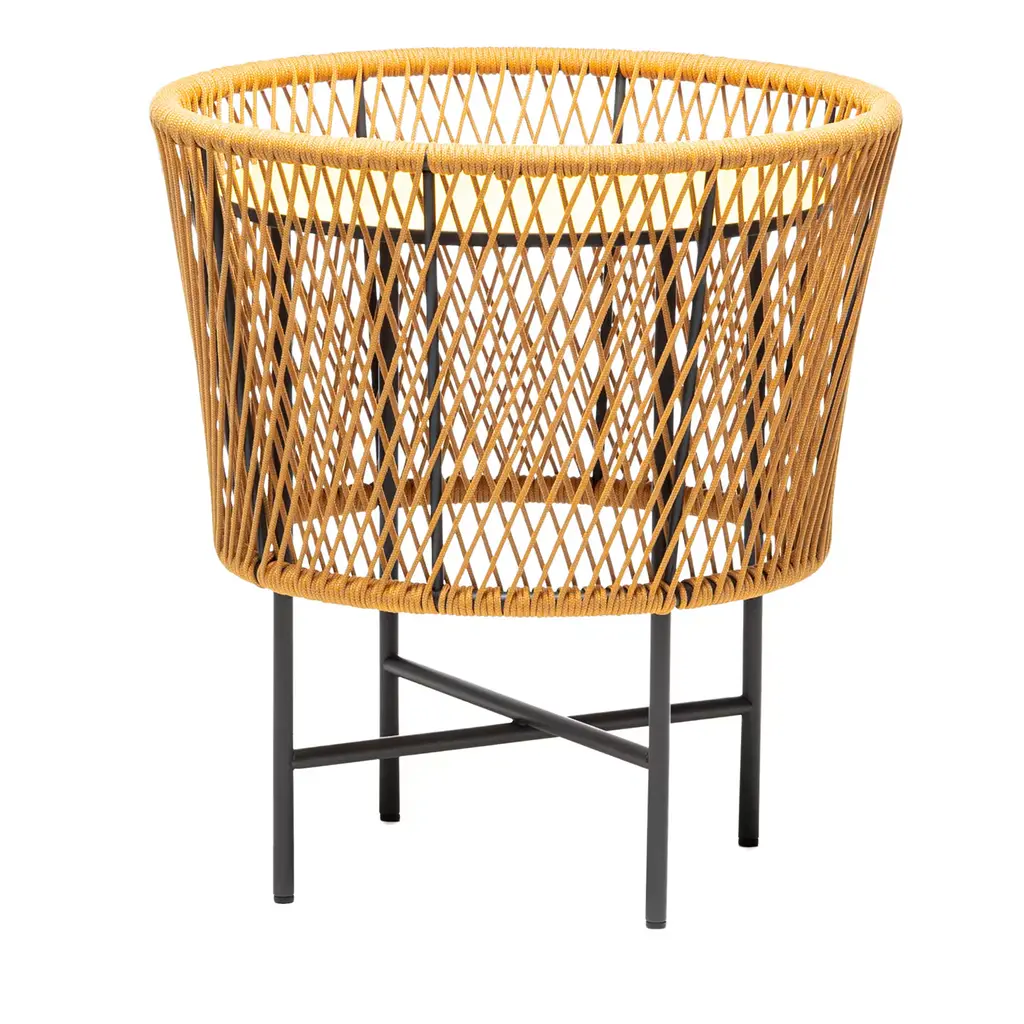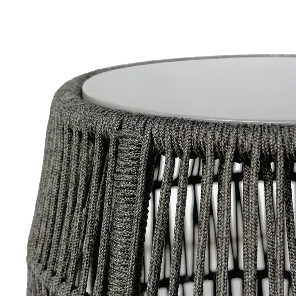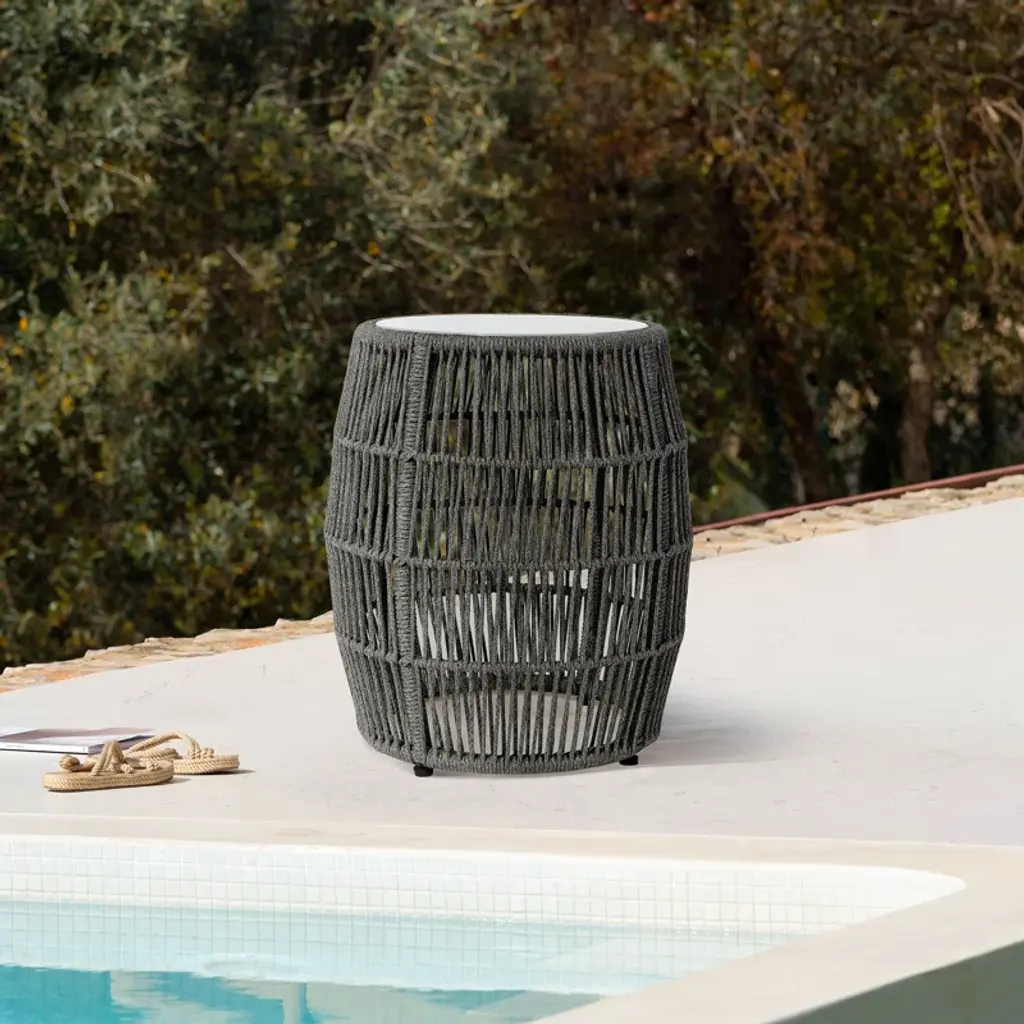 Say hello to your new favorite spot for your morning coffee or evening cocktail! Our round side table is crafted from solid steel and wrapped in weather-resistant rope for a unique touch. The tabletop has a smooth, white finish that's not just pretty, it's practical, too - made from a five-layer composite material with cement fiberboard and an aluminum honeycomb core. It's durable and can handle all sorts of weather conditions. Plus, it's just the right size for your outdoor space, whether you're working with a balcony or a sprawling patio.