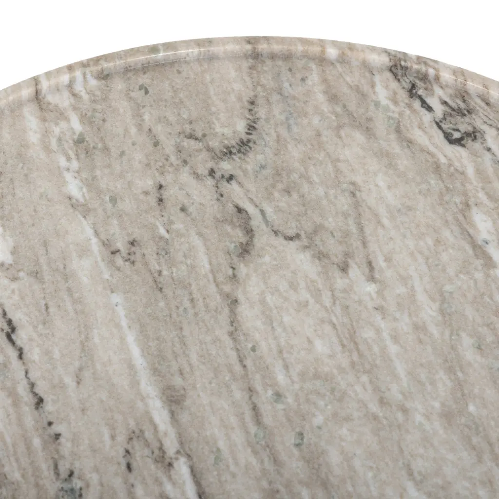 Introducing the Davis End Table- 22" - Antique White Marble, a piece that effortlessly layers sophistication into any space. This end table features a dramatically shaped base crafted from antique white marble, complemented by slim iron piping. The rounded tray-style tabletop offers the perfect spot to place your favorite book or nightcap, making it a versatile addition to your living area or bedroom. Its elegant design and functional form make the Davis End Table a timeless choice for enhancing your home's decor.