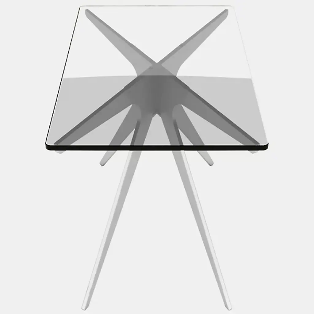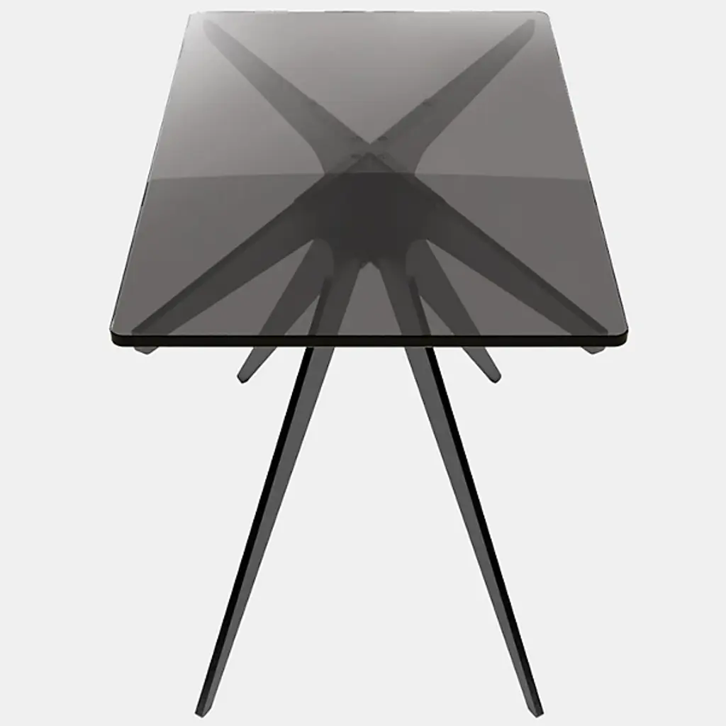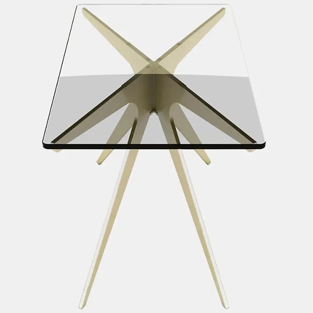 Clean and elegant, the Dean Rectangular Side Table is inspired by silhouettes of mid-century modern design. This beautiful piece features clear or smoked glass tops that showcase the sculptural quality of the contrasting frame below. The side table is both light and elegant with its stylish x-base in satin brass or blackened steel base options. Mix and match the glass top and base for a unique experience fitting the room's vibe. Gabriel Scott also offers other tables, such as coffee tables and side tables, in the Dean Collection.