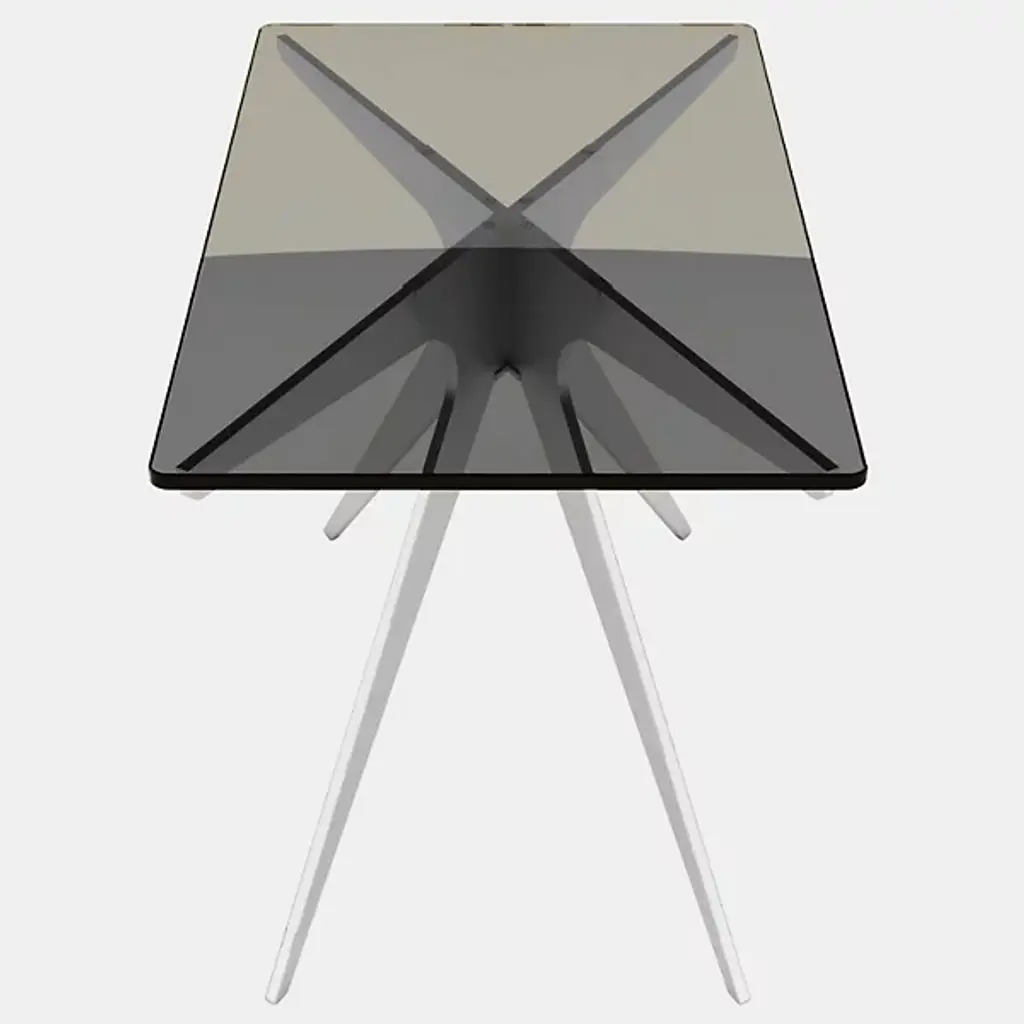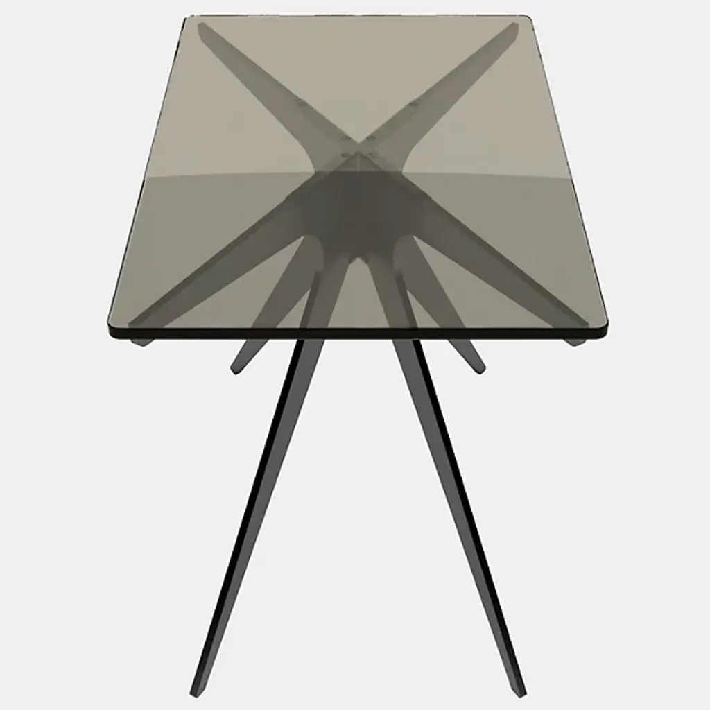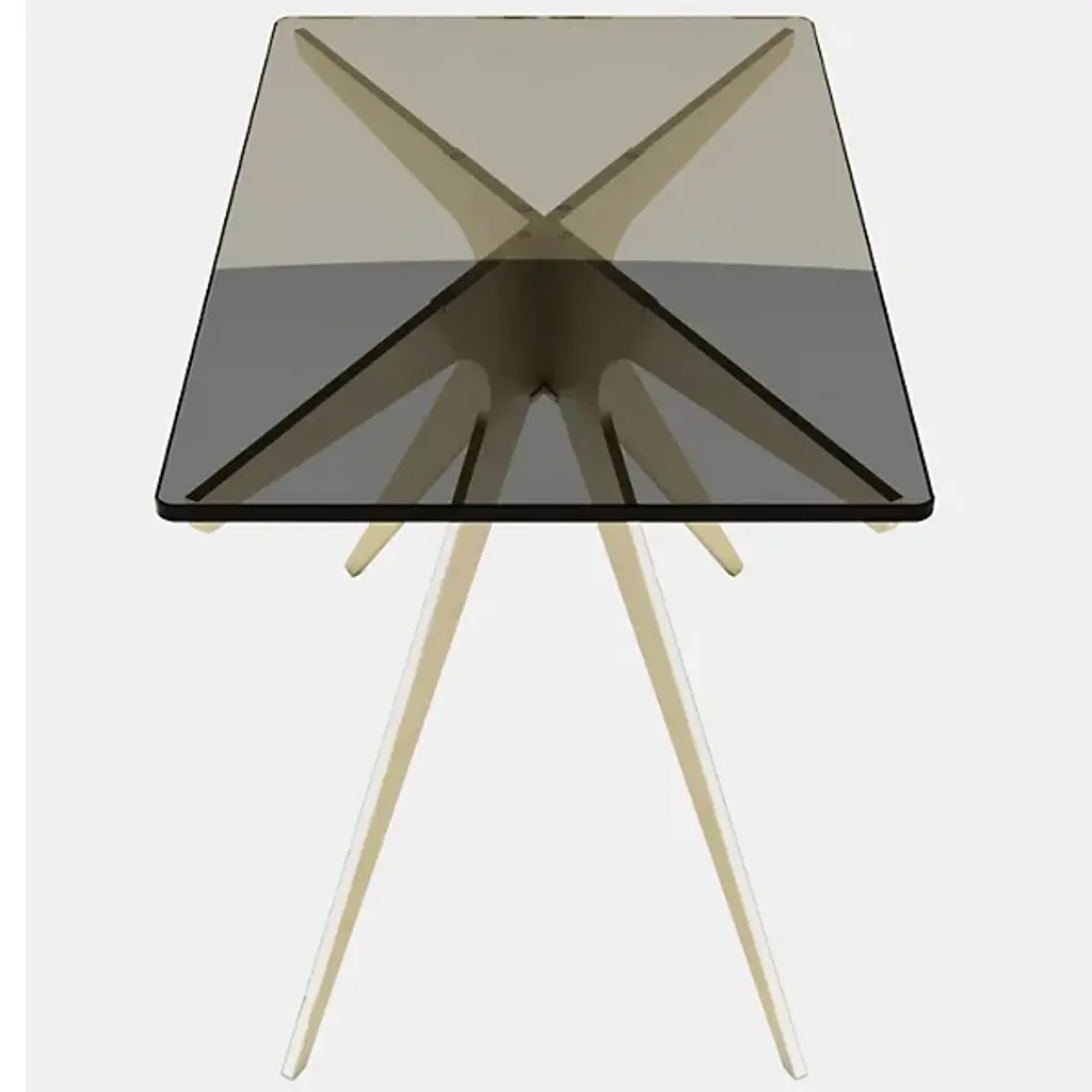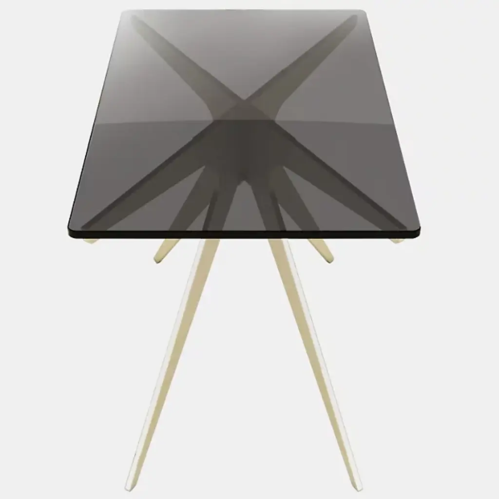 Clean and elegant, the Dean Rectangular Side Table is inspired by silhouettes of mid-century modern design. This beautiful piece features clear or smoked glass tops that showcase the sculptural quality of the contrasting frame below. The side table is both light and elegant with its stylish x-base in satin brass or blackened steel base options. Mix and match the glass top and base for a unique experience fitting the room's vibe. Gabriel Scott also offers other tables, such as coffee tables and side tables, in the Dean Collection.
