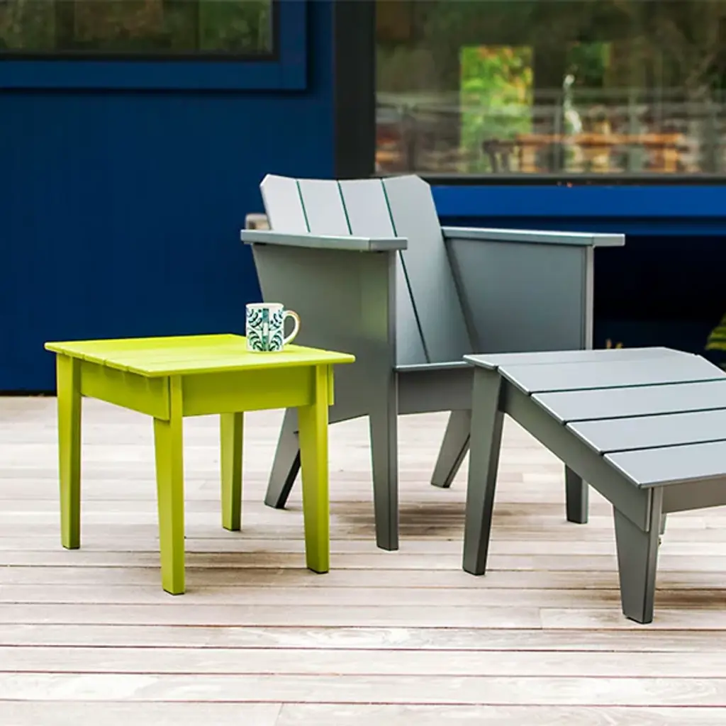 Add a smooth accent to your outdoor spaces with the Deck Outdoor Side Table from Loll Designs. Designed by Brendan Ravenhill, it’s a robust, contemporary piece that sets a slatted top fashioned from robust boards of recycled polyethylene made mostly out of High-density Polyethylene (HDPE) derived from recycled Milk Jugs atop an open, four-legged structure. It’s easily able to shed heat and moisture while coordinating with the Loll Deck Chair and Ottoman for a cohesive array of outdoor furnishings.