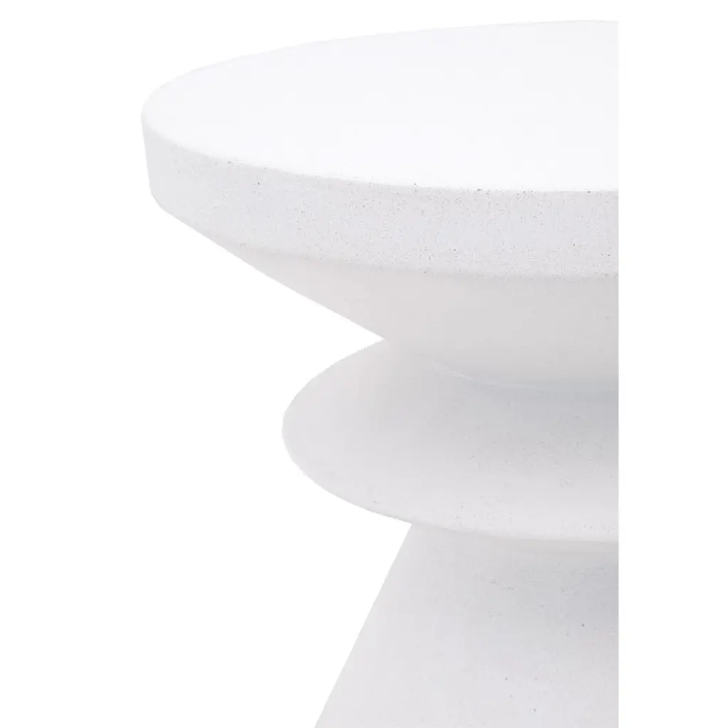 Declan Coastal Beach White Concrete Round Hourglass Outdoor Side End Table