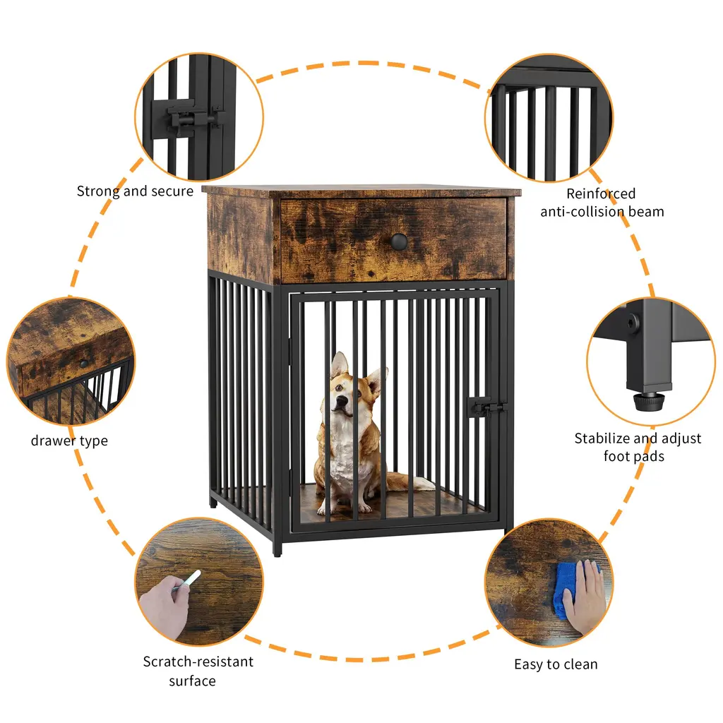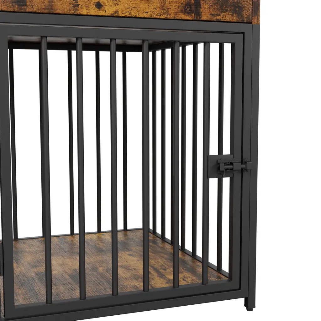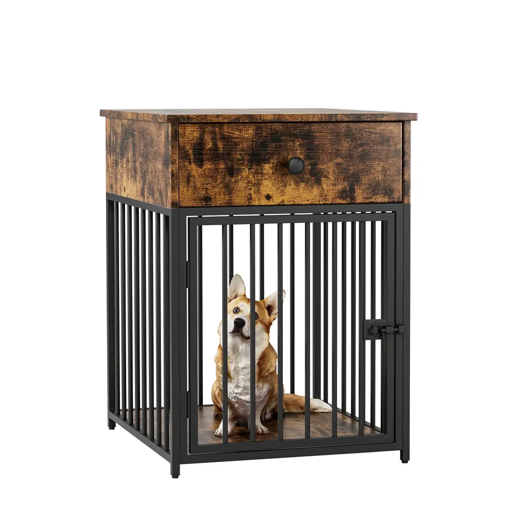 Decorative Dog Crate Dog House Dog Kennel With Drawer Indoor Pet Crate End Table For Small Dog Iron-Tube Dog Cage - Brown