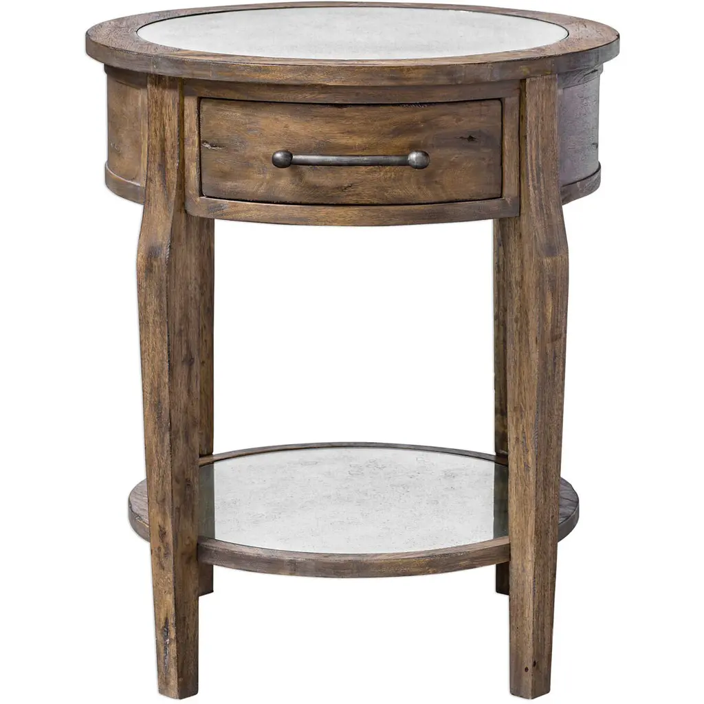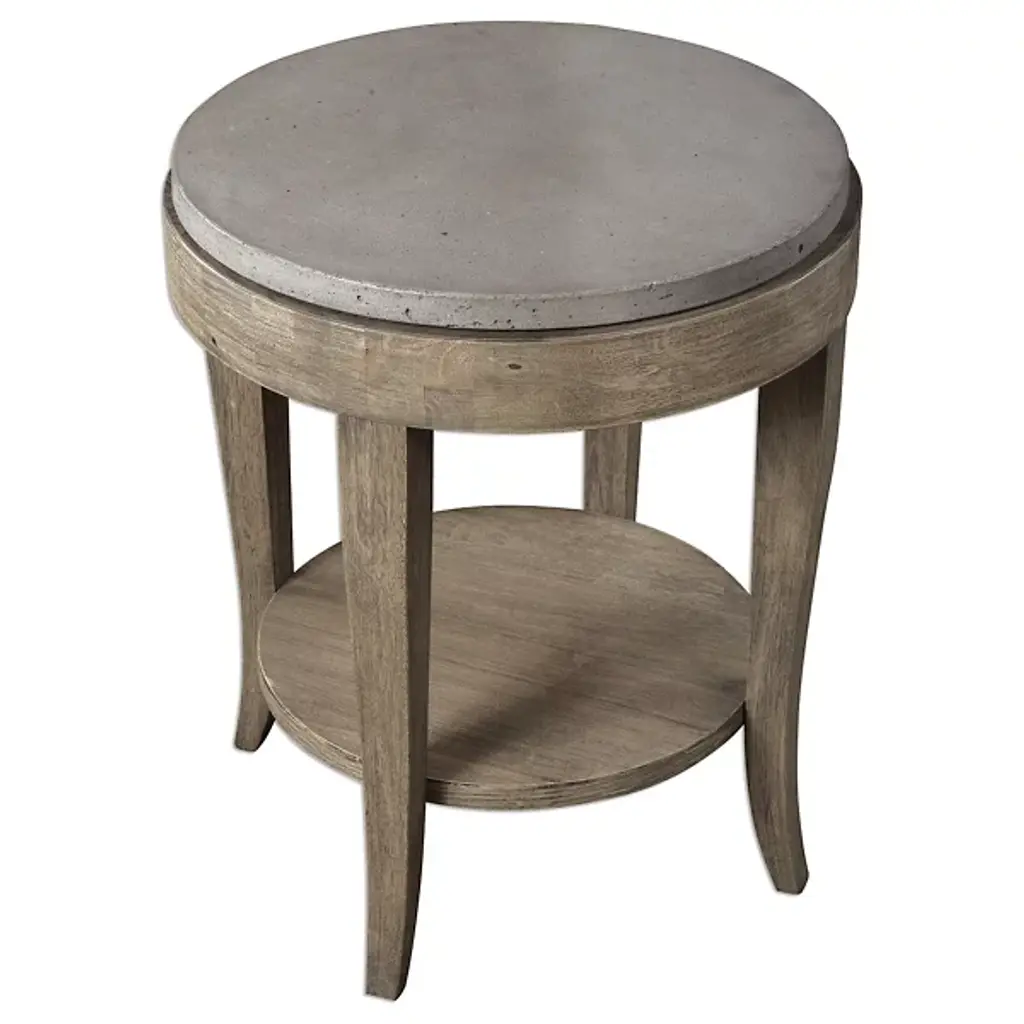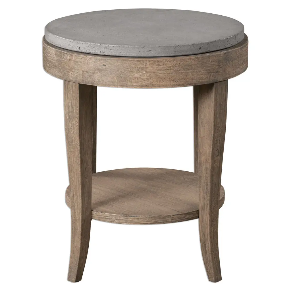 Furnish your home with the Deka Side Table from Uttermost. Embrace casual farmhouse charm with this birch wood veneer-crafted piece. Its poured concrete and timeless design make it a nice addition to any living space, whether placed beside a sofa, armchair, or bed. Your table exudes warmth and natural beauty, adding functional elegance to your home decor. The cozy charm and quality craftsmanship of this delightful accent complement your decor style, bringing a touch of rustic character.