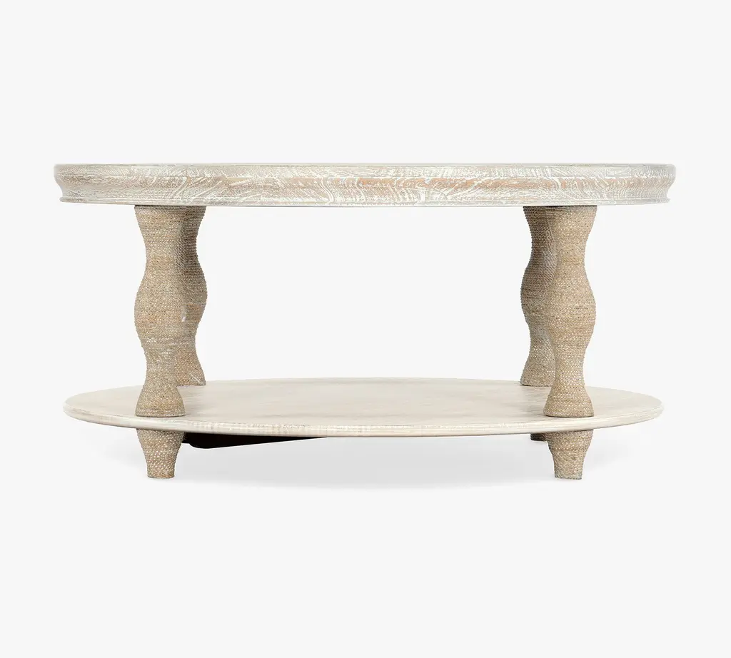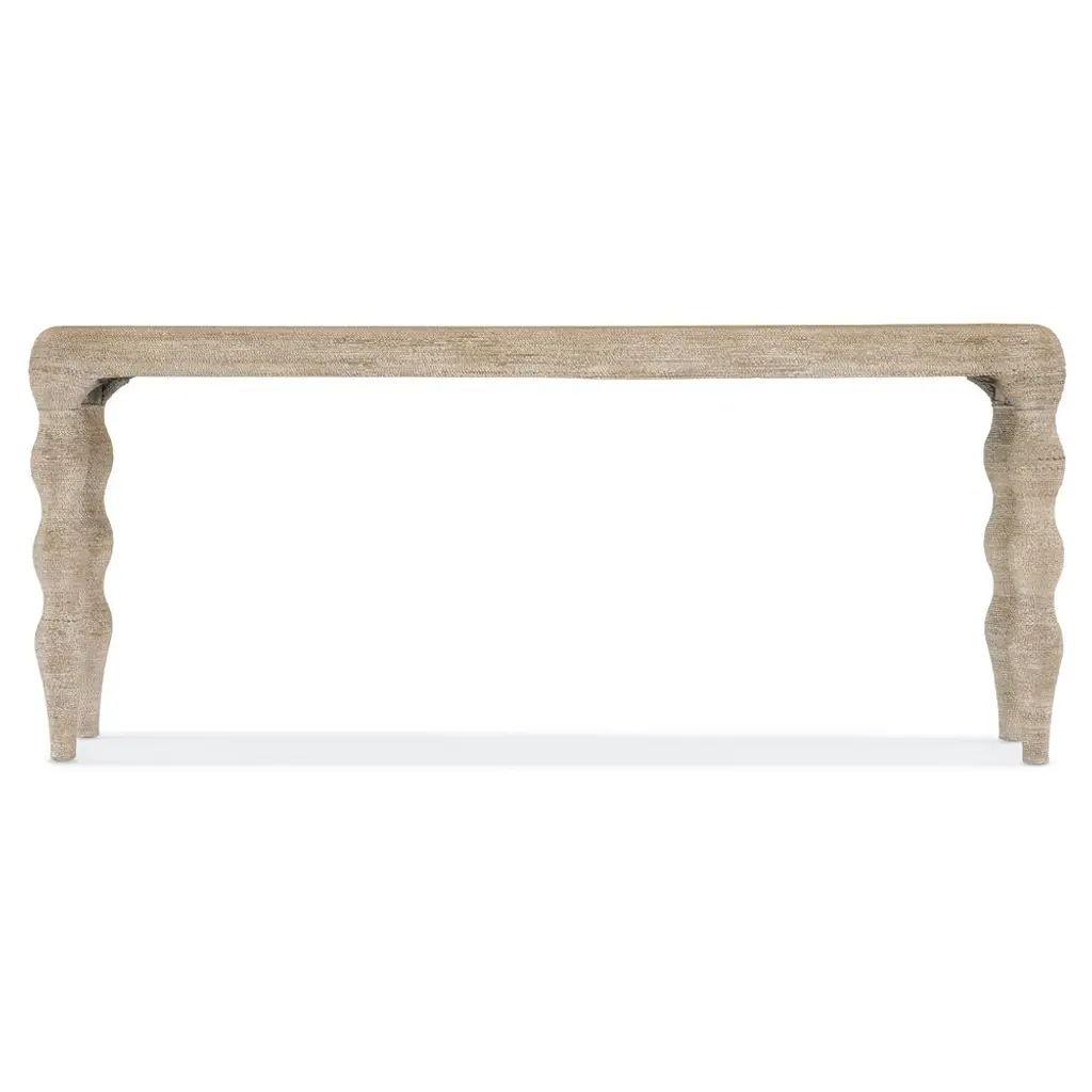 Designed to create an inviting space, we love the warmth of Delvy’s patinaed finishes and organic textures. Crafted with a weathered, white oak veneer, its serpentine-shaped legs are wrapped in abaca rope, giving a relaxed look to this traditional silhouette.