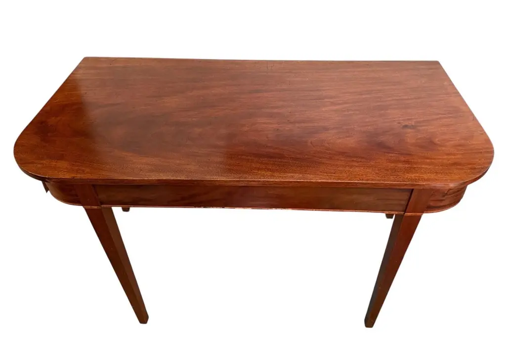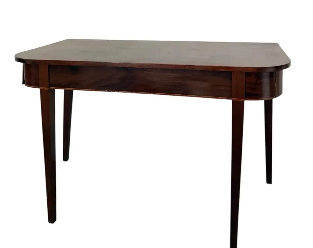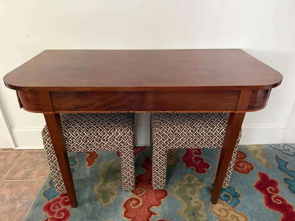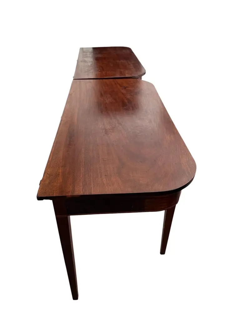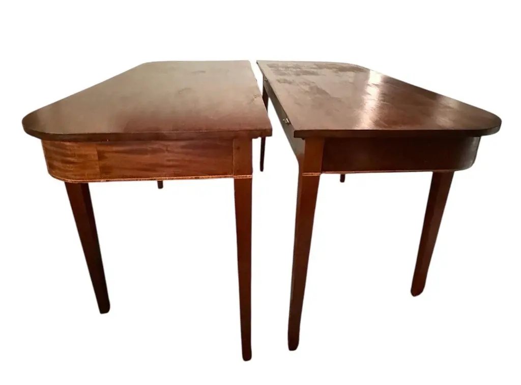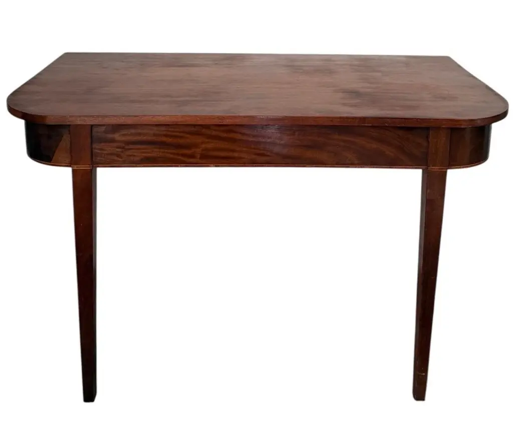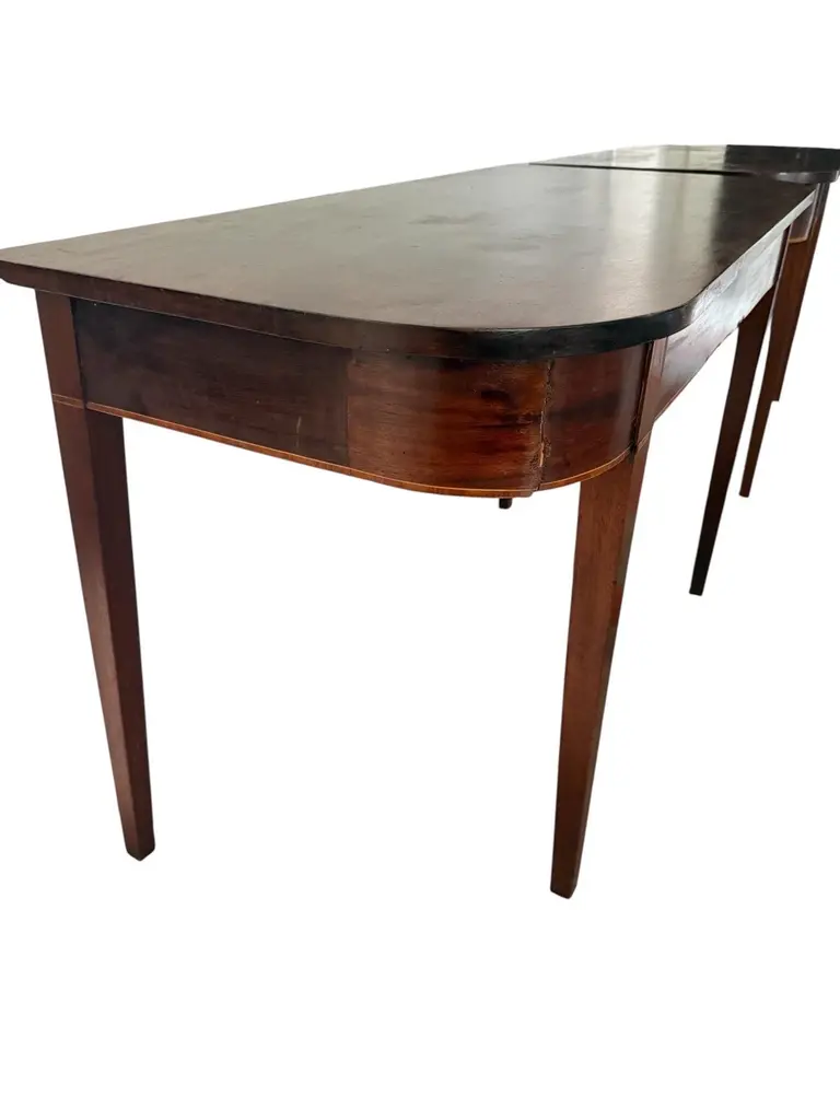 Antique Large Demi-Lune Shaped Table, we have 2 of them. A great way to anchor 2 sides of a space and display items. These would also make beautiful entryway tables or retail tables to display beautiful decor and other gems!DIMENSIONSW48” x D23.5” x H29.25”