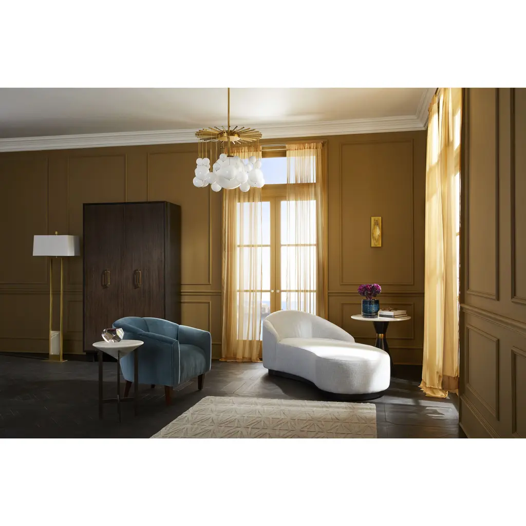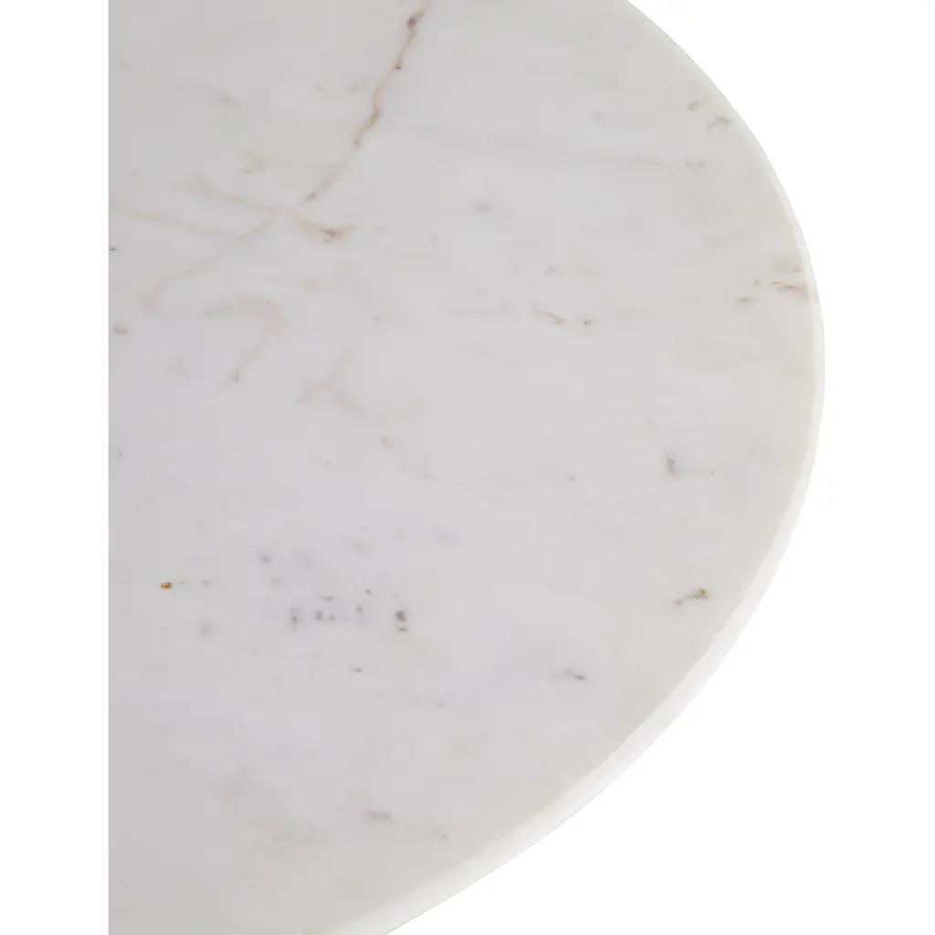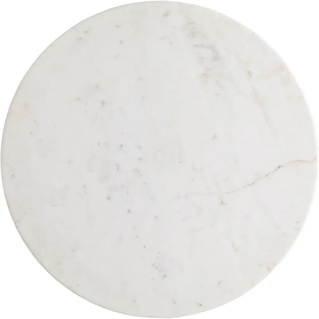 With clean lines and swooping curves this debonair accent table draws inspiration from elegant skirts that cinch at the waist. The use of mixed materials adds to its allure featuring a sleek white marble top and an hourglass-shaped bronze pedestal that is cinched with an antique brass belt. Its simple design and sophisticated style work in various settings. Finish will vary.