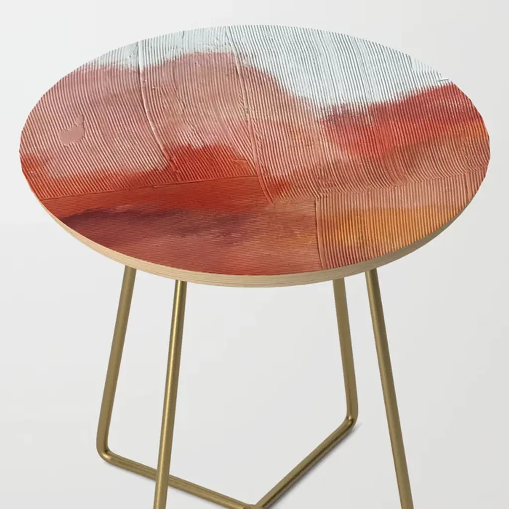 Desert Journey [2]: A Textured, Abstract Piece In Pinks, Reds, And White By Alyssa Hamilton Art Side Table