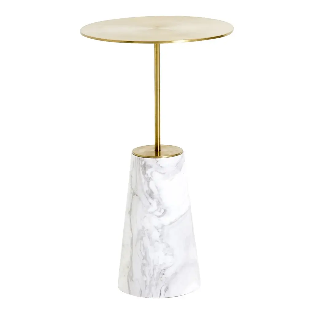 A touch of polish can elevate any edit. The Devlin side table brings a luxe mix of materials in a chic design. With its slender silhouette, this small end table is the perfect place to perch a drink beside your favorite armchair.
