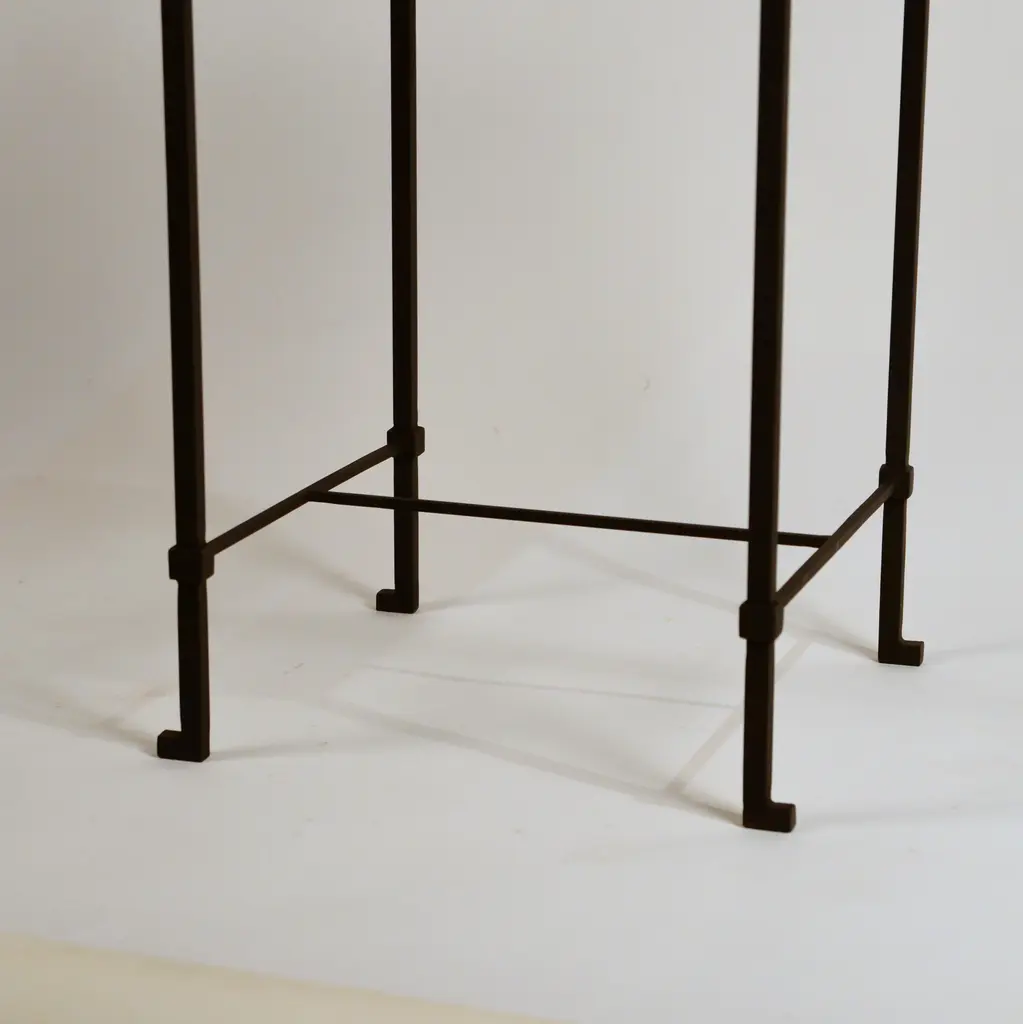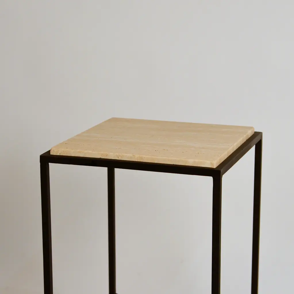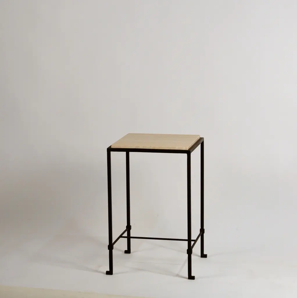 Diagramme' wrought iron and honed travertine drinks table by Design Frères. Classic, understated design.
