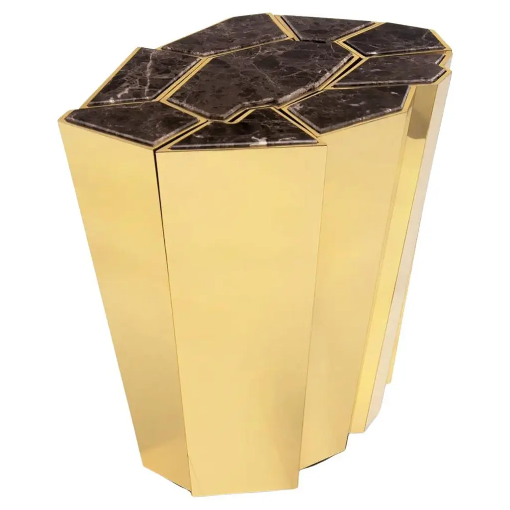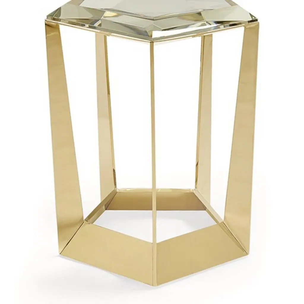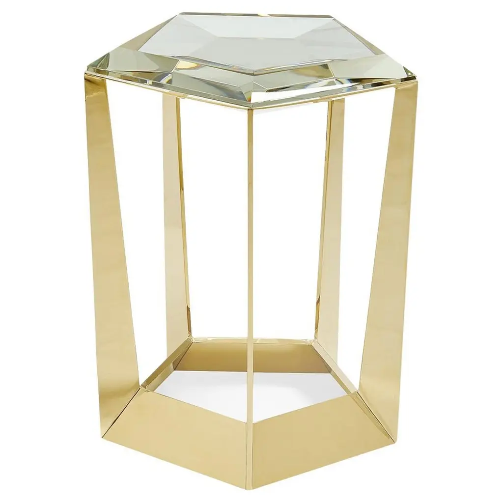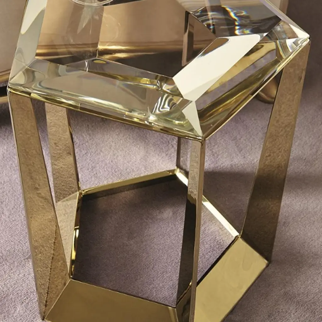 SIde table Diamony with structure in steelin gold finish. With bevelled crystal glass top.