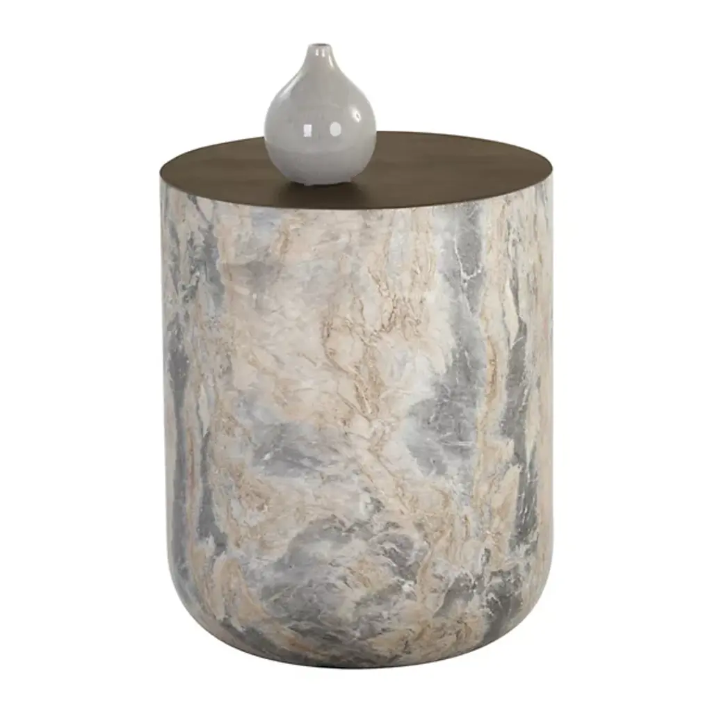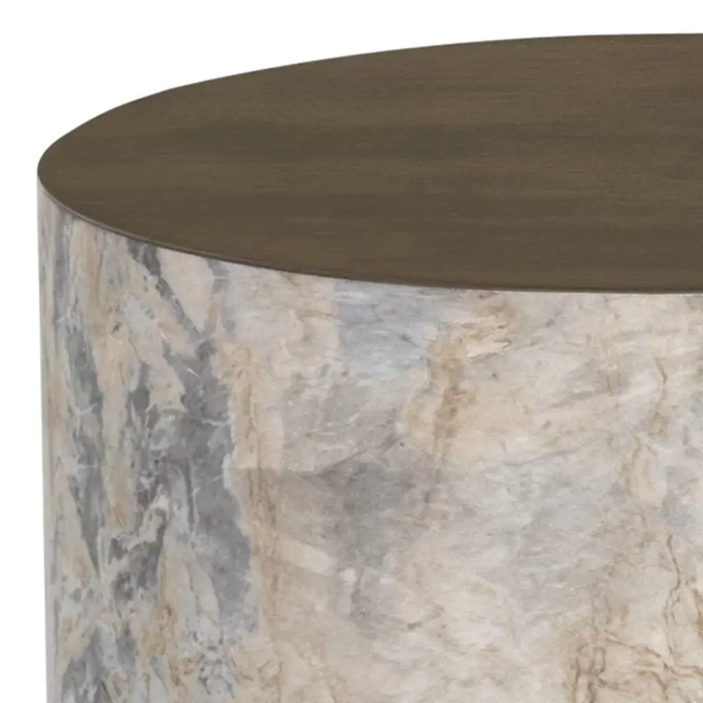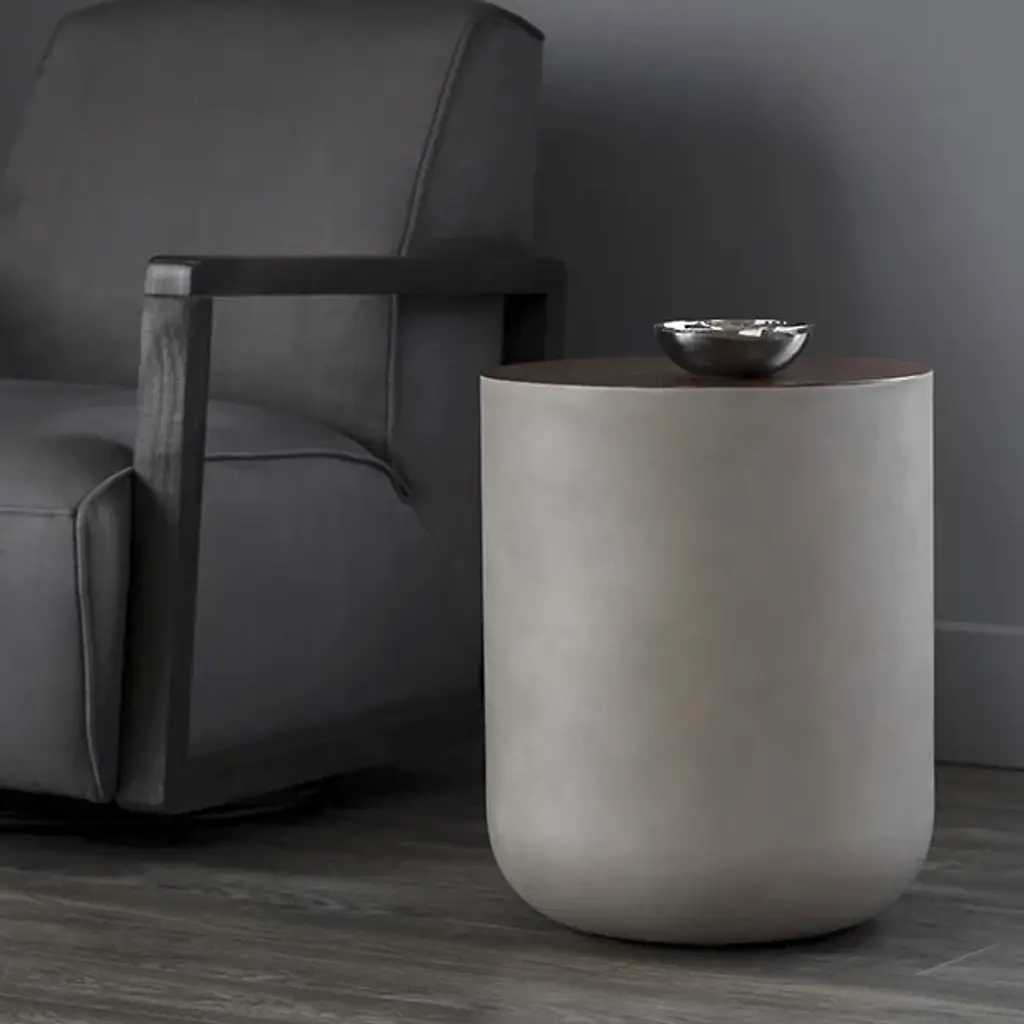 The Diaz Side Table from Sunpan combines bold design with practical elegance. Made in Vietnam with a strong glass fiber-reinforced concrete structure, this drum-style table features a round base in a grey finish, beautifully contrasted by its contrasting top for added visual intrigue. Perfect for outdoor or indoor use, its durable construction ensures lasting appeal. At the same time, subtle natural variations in tone and texture make each piece one of a kind, blending contemporary style with functional character.