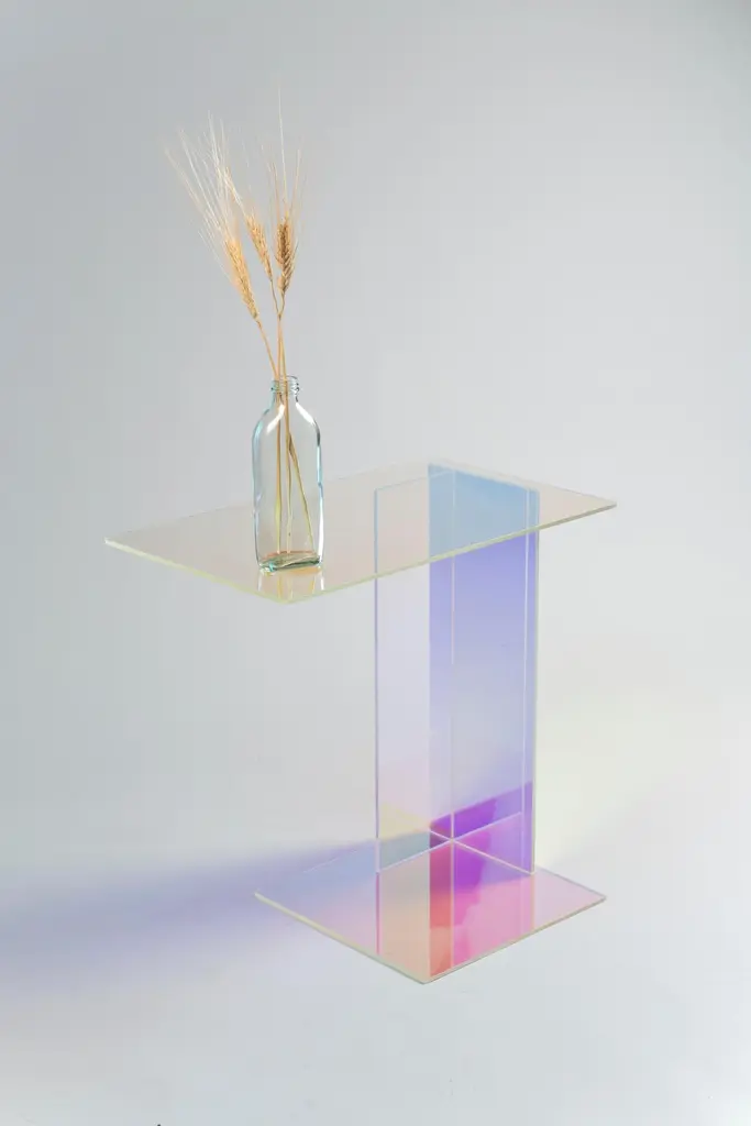 Dichroic side table - Rona KoblenzMeasures: 49 x 50 x 30 cm"A spectrum (plural spectra or spectrums) is a condition that is not limited to a specific set of values but can vary infinitely within a continuum".- Rona Meyuchas-Koblenz is inspired by reflection and refraction, absorbent and repellent. The studio’s continuous interest to create a timeless dialogue from past to future through presently active living, has been expressed in its current work, ‘Spectra’, using Dichroic finished glass as a dominant material. The environment we live in is affected by a spectrum of different conditions. Kukka chose to use Dichroic glass to help express the significant conditions affected by light and time, reflection and refraction. Similar to the social behavior expressed through social media channels and the internet: absorbing and repelling, yet the glass, a modern material used since the Roman empire, has its own structural, solid properties. The quartz is an abundant mineral in earth. The slabs are solid, reflecting physical, stable and timeless design. "I am particularly interested to create timeless design by using simple geometry and basic materials . The dialogue between the two is expressed in Spectra"- Rona Meyuchas-KoblenzRona Meyuchas-KoblenzBorn in Tel-Aviv, Rona is an internationally acclaimed product designer, art director and researcher. She graduated in 1999 with a Master degree from the Scuola politecnica di design in Milan and started her career by working in different design consultancies in Milan and London.Rona's experience in design and manufacturing then motivated her to create products under her own label, and her first collection was released in Milan during Salone del Mobile 2007 at Spazio Romeo Gigli. The following year she was approached by the British embassy in Milan to exhibit selected products at The Galleria d’Arte moderna in Milan, an exhibition curated by Sir Paul Smith and Moroso.The minimalist democratic approach and an honest design are most recognized with Rona’s style and work. In 2010, she created the brand kukka, which works for architects, interior designers, private clients and retailers such as Conran, Paul Smith, La Rinascente, Selfridges, or De Padova.The studio, underpinned by creative stimulation, specializes in experimenting with materials, manufacturing methods and technology.Rona is also a visiting lecturer (V&A, LFA, Design Museum talks, ICFF, Shenkar College, Plymouth university) a writer (BVD Magazine) , tutor (Domain Boisbuchet, Shenkar College) and the founder of Designers in the Middle. Exhibitions2018 Contemporary Tapestry for i-mesh - Salone Del Mobile, Milan ALCOVA2017 Fresh Paint art fair - Blinds, Spectra - Steinhardt Museum of Natural History 2017 Fresh Paint art fair - amphitheatre, Mega Block installation - Steinhardt Museum of Natural History Tel-aviv2016 Design Museum talks program, London Design Festival - presenting Designers in the Middle2016 Spectra with Frame Magazine - Salone Del Mobile - Milan2015 Caesarstone UK installation - Super brands , Tent - London2015 19 Greek street - The art of progress - London2015 Salone del mobile – designjunction - Milan2015 Salone del mobile – URBO - Milan2015 Maison et Objet2014 Gallery Joseph – Paris design week2014 DesignSpace & Caesarston – Zeva Tari TLV2014 The Green Room at Design Junction – Salone Del Mobile, PalazzoMorando, Milano2013 Design Junction – London Design Festival, The sorting office WC12012 Design Junction – London Design Festival, The sorting office WC12012 DesignSpace – TLV, Israel2011 HiddenArt – London Design Festival – Earls Court2011 Design Junction – London Design Festival – London WC12011 Shoplifters/Habitat - Habitat headquarters, Israel2010 La Rinascente Design Supermarket – Salone Del Mobile Milan2009 D:sign – Museum quarter Vienna2009 100% design Tokyo - DesignBoom2009 Palazzo Reale -Galleria Di Arte Moderna – Milano Salone del mobileBritish Design Embassy – curated by Paul Smith & Moroso2009 MACEF - Milan2008 Our Eco Gallery– Notting Hill, London2008 Lighten-Up – Newcastle design week2008 Lighten-Up – London design week – Earls Court2007 Right_here satellite exhibition – Vienna design weeks2007 Napkin project – The gallery soho. 2007 designersblock at the Milan Salone del mobile – Studio Romeo GigliLectures & Workshops2019 London Festival Architecture - “Collaborations” curated by Melodie Leung from Zaha Hadid Architects and the Museum of Architecture 2019 Jerusalem Design week - Designers in the Middle with Galit Gaon 2018 Reflection refraction - The 5th Lamp Festival, Tel - Aviv2018 "De Fence" workshop - Tutor Domain De Boisbuchet2018 "Soft Architecture" - Panelist - A Discussion Panel during Salone Del Mobile moderated by Joseph Grima and Cristina Colli. 2018 "Merkaha" workshop - Tutor - in collaboration with Croceira Amorim,Design Terminal Bat-Yam and Shenkar Collegeof Engineering & Design2017 Shenkar College of Engineering & Design - Curatorial Design post Graduate course2017 V&A, Global Design Forum, LDF, Designers in the MiddlePresenter and panelist2017 ICFF, at the Javits Centre. Designers in the Middle discussion panel - Presenter and panelist2016 Rihutim - Tel aviv - Spectrum2016 Design Museum London - LDF - Designers in the MiddlePresenter and panelist2016 Domaine du Boisbuchet - FR - Tutor - Illuminating the woods2016 ILGBC (Israeli Green Building Council) - IL2015 OT Haitzuv Design Award - IL2014 Holon institute of design and technology - IL2009 Plymouth University - UKAwards & Achievements 2017 Winner - LG collaboration program2015 Shortlisted - WIN award - Cubo Light2015 Finalist - Ot Haitzuv – 22Rothschild2014 Finalist - Ot Haitzuv – 3E2008 Recognition of excellence in design from the Israeli government2006 Granted Patent - Yplate (A feeding device).