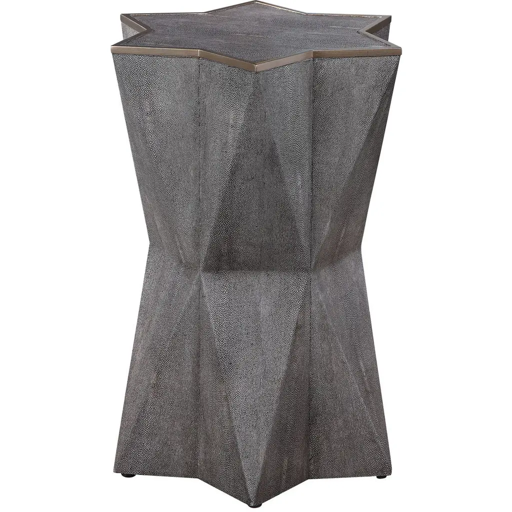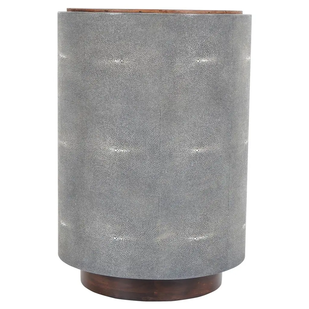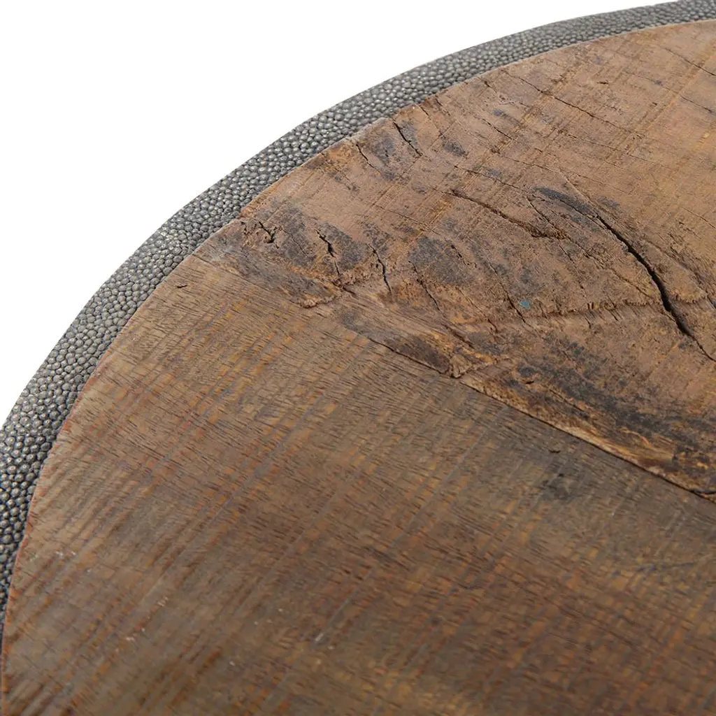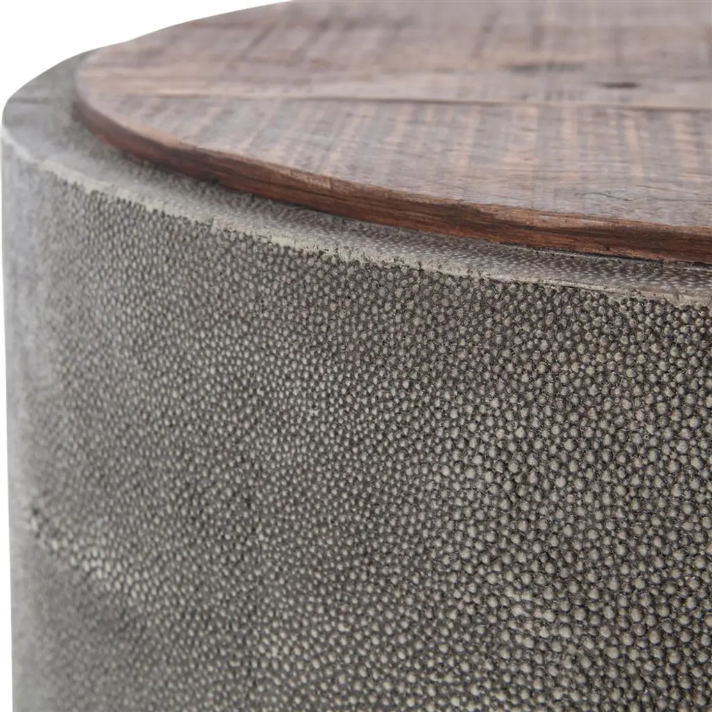 Dieter Rustic Modern Grey Faux Shagreen Wood Round Side Table