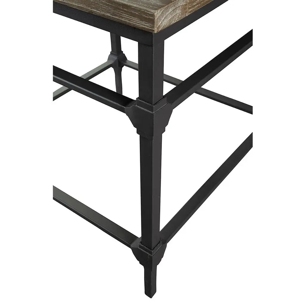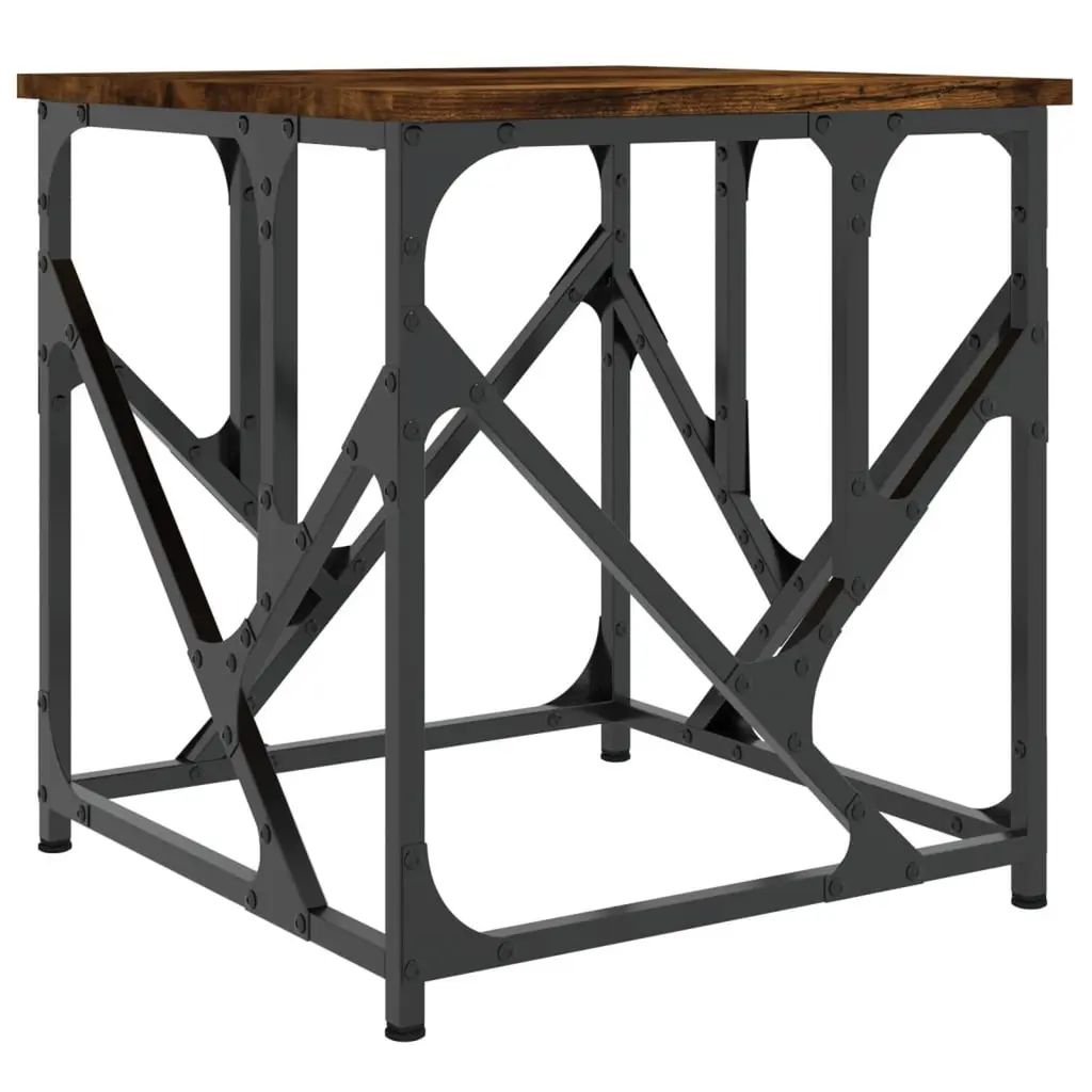 Dinelle Rustic Lodge Brown Oak Wood Black Iron Square End Table