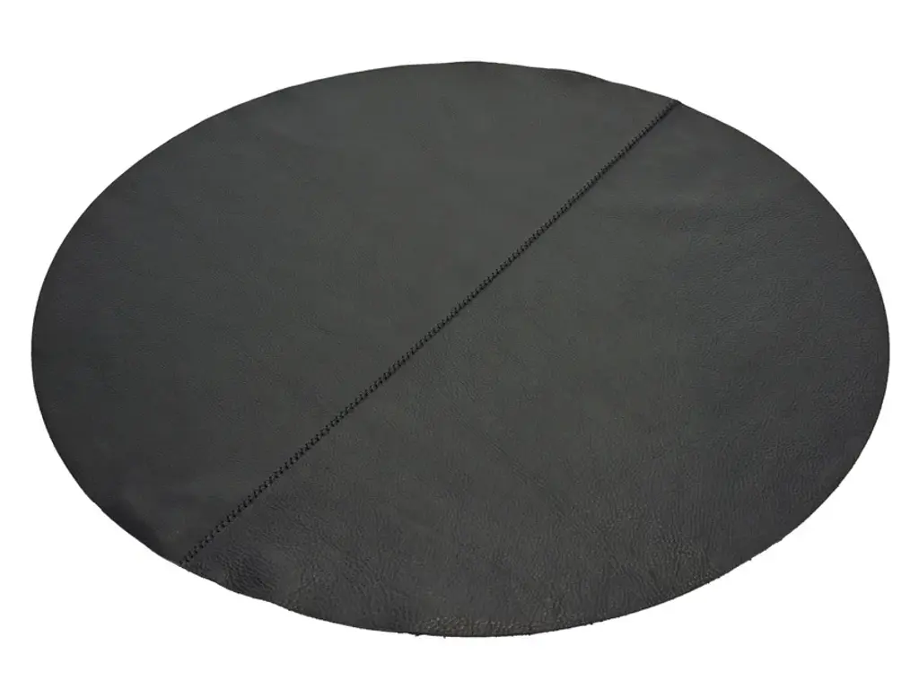 Dining table is a round low table made of steel.Her urge for (un)perfect beauty is Bea's greatest drive and forms the basis for a versatile line in interior design, with sober lounge sofas, bean bag chairs, bistro tables, side tables, concrete trays, black steel wall racks, and decorative mirrors and atmospheric lamps in three sizes.For her steel table series, Bea Mombaers has designed a sturdy table mat in thick black leather that covers the entire tabletop.Bea Mombaers: "The idea to launch a line of lounge sofas grew very organically. I was looking for an utterly sober sofa with an invisible framework for the B&B. It had to look like a floating seat element with only cushions, in which the frame would completely disappear. Eventually, I ended up ordering a customised prototype for my size. The result was a low one-seater of 90 by 90 centimetres with a heavy metal frame and extra thick cushions in a weather-resistant material. I love taking indoor life outdoors and vice versa. The Bea Mombaers for Serax sofa collection includes a two-seater, a three-seater and a footstool in the same size as the one-seater. All models are produced in black aluminium for better manoeuvrability and equipped with soft, light fawn-coloured cushions for indoor and outdoor. By combining and configuring the various elements, you can create your own seating isle without restrictions."