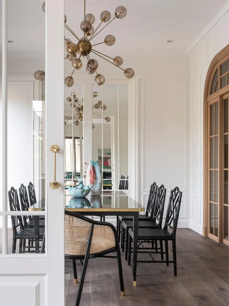 Julieta Collection. Table with Black Steel Conical Legs with Brass Bottom End Table Top on High Gloss Laminate Brass Tape FrameIntroducing the stunning dining room table with black powder-coated steel construction, boasting sleek conical legs with brass accents at the bottom. The table top features a high gloss laminate finish, available in a variety of colors to suit your taste and style. The mid-century modern influence is evident in the brass tape frame that adds a touch of sophistication and elegance.This exquisite table is perfect for various settings, including hospitality venues such as hotels, restaurants, and bars, as well as offices or private residences. Designed and fully manufactured in Spain, each piece is meticulously crafted to order, ensuring exceptional quality and attention to detail.The conical legs not only provide stability but also add a touch of contemporary flair, making this dining room table a statement piece in any space. The black powder coating on the steel gives it a sleek and modern look that complements the overall design. The brass accents on the legs add a touch of opulence, elevating the table's aesthetic appeal.The table top is made from high gloss laminate, which not only adds durability but also gives it a lustrous finish that catches the eye. The multiple color options for the table top allow you to choose the perfect hue to match your interior decor. The brass tape frame adds a touch of timeless elegance and serves as a visual highlight that sets this table apart.With its unique blend of mid-century modern style, meticulous craftsmanship, and versatility, this dining room table is a true masterpiece that exudes sophistication and style. Whether it's for entertaining guests in a chic restaurant or adding a touch of elegance to your private residence, this table is sure to make a statement in any setting. Don't hesitate to inquire about specific dimensions, as each piece is made to order, ensuring a perfect fit for your space. Elevate your dining experience with this exceptional dining room table with conical legs, designed to impress and built to last.