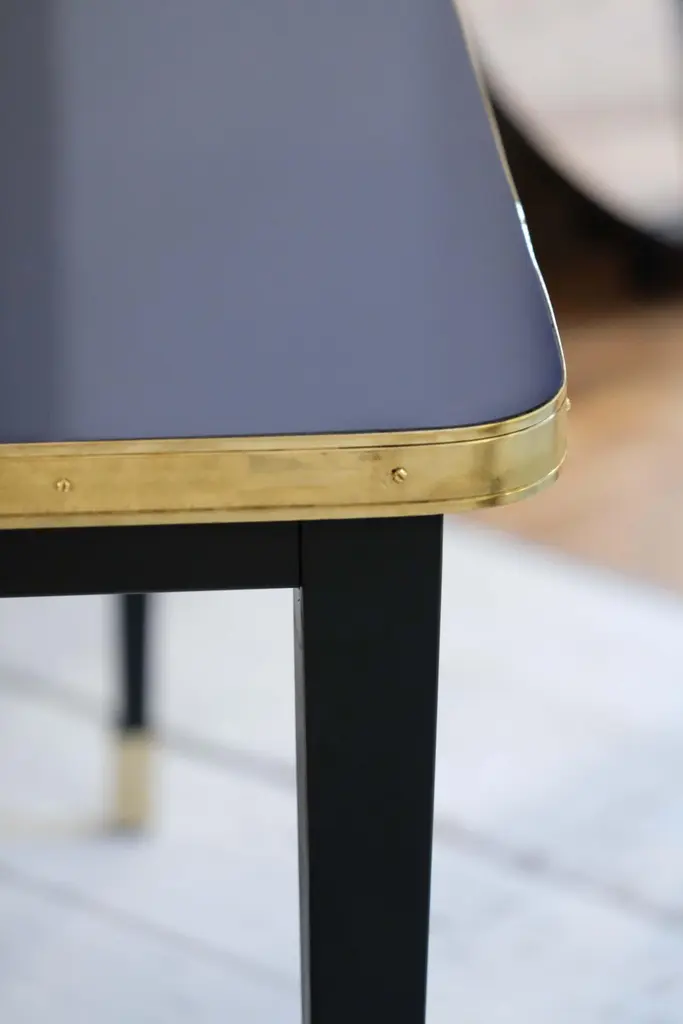 Dinning Table, High Gloss Laminate, Brass, Conic Legs, Navy Night Sea - L