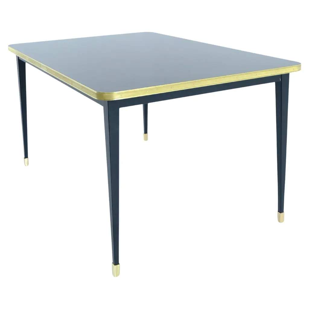 Dinning Table, High Gloss Laminate, Brass, Conic Legs, Navy Night Sea - M