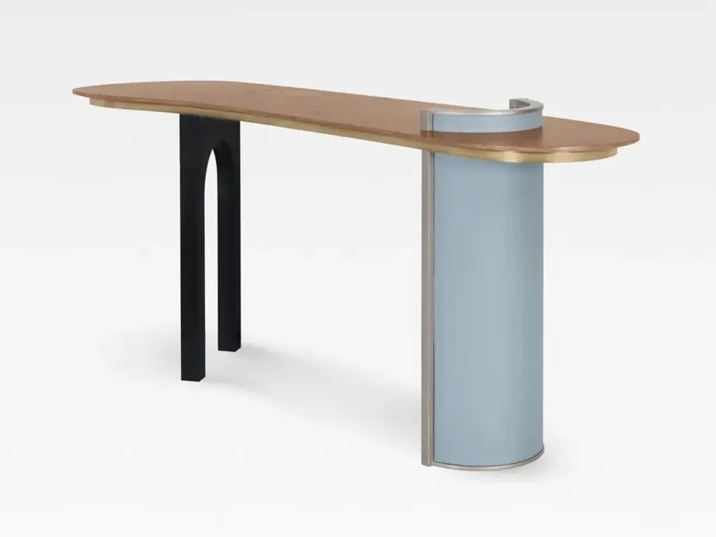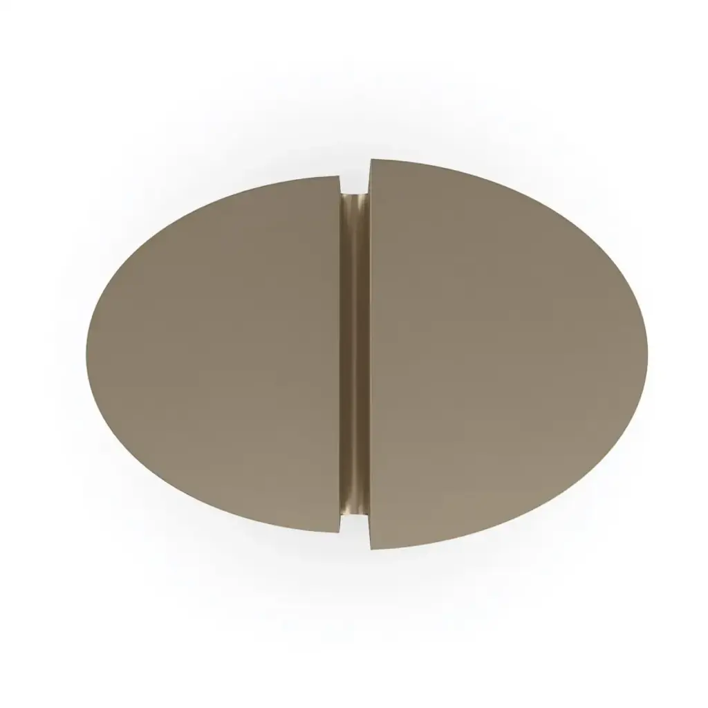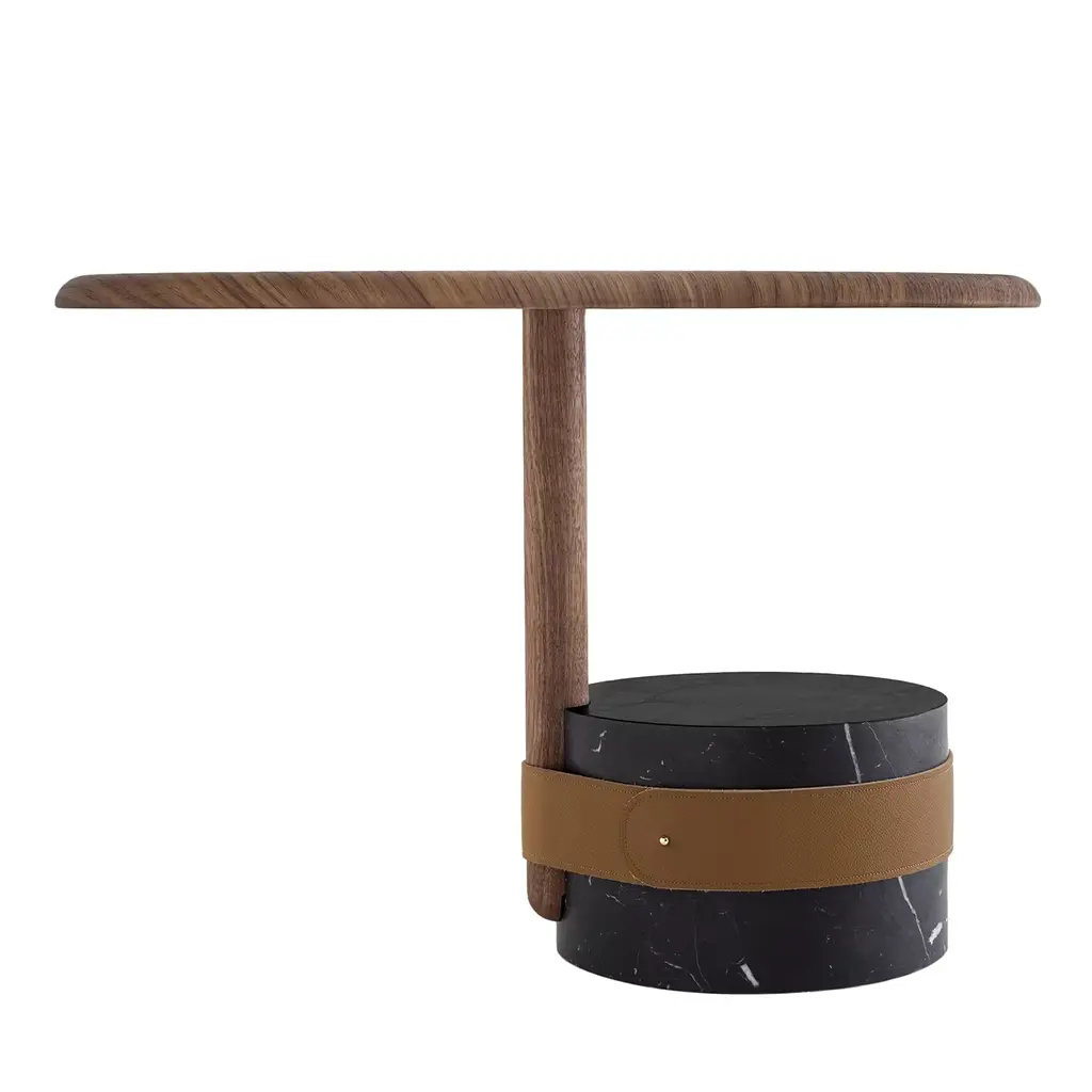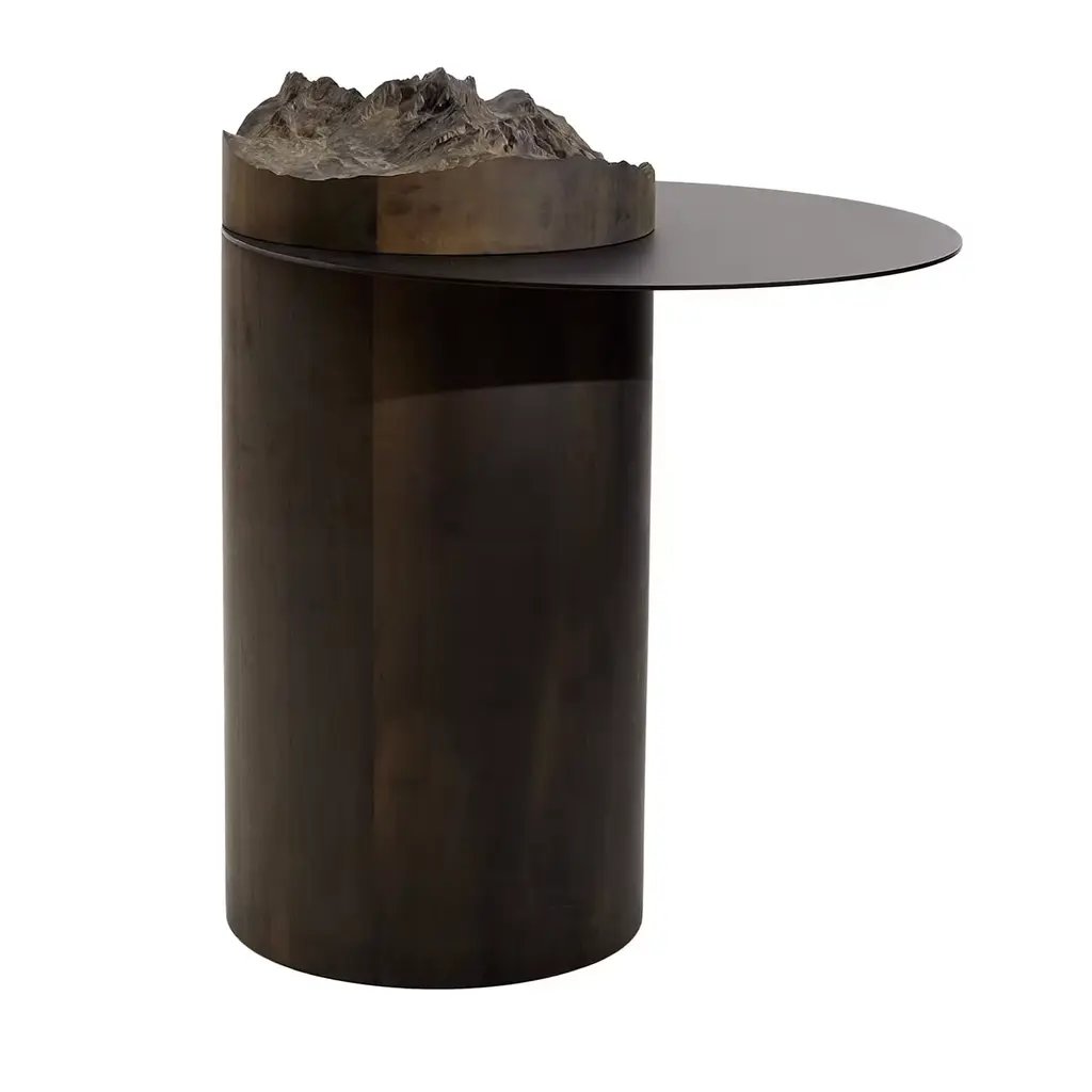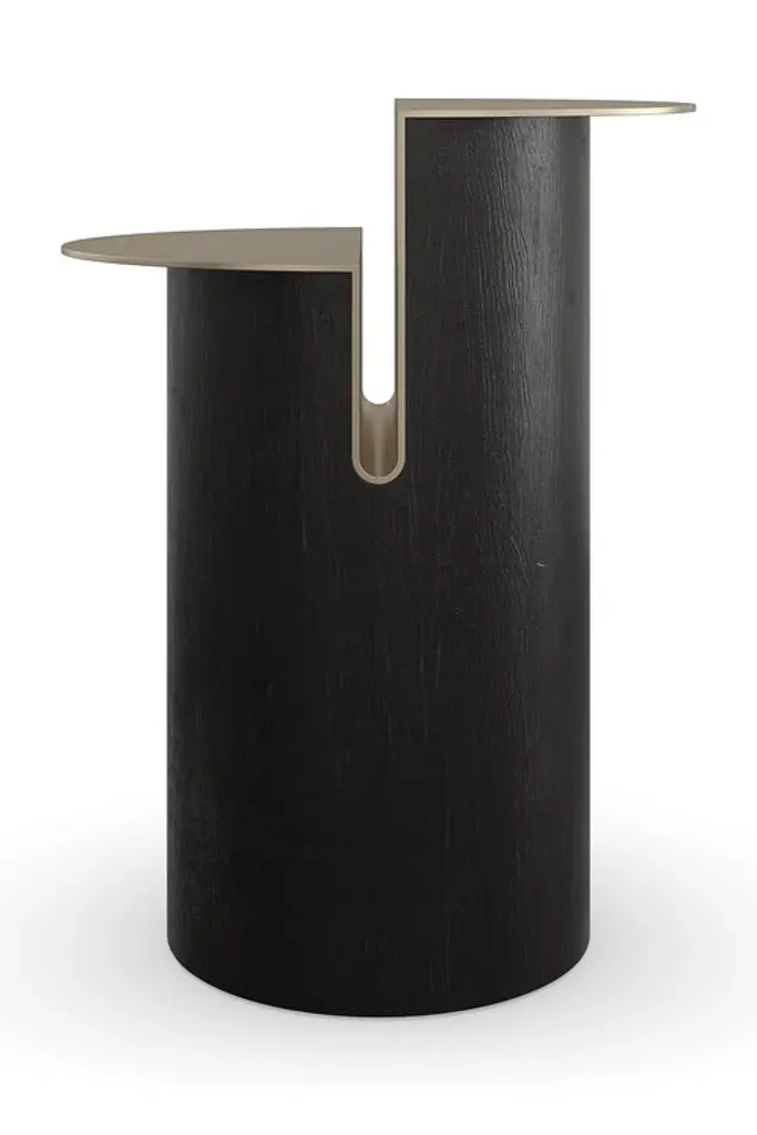 With a split top surface poised at varying heights, this artful accent table adds movement and an element of surprise. Crafted in a simple yet sophisticated material mix, its rich, Modern Walnut base is warmly complemented by Lucent Bronze Metallic accents. An exercise in duality, it draws the eye and is perfectly proportioned for holding a beverage or book.