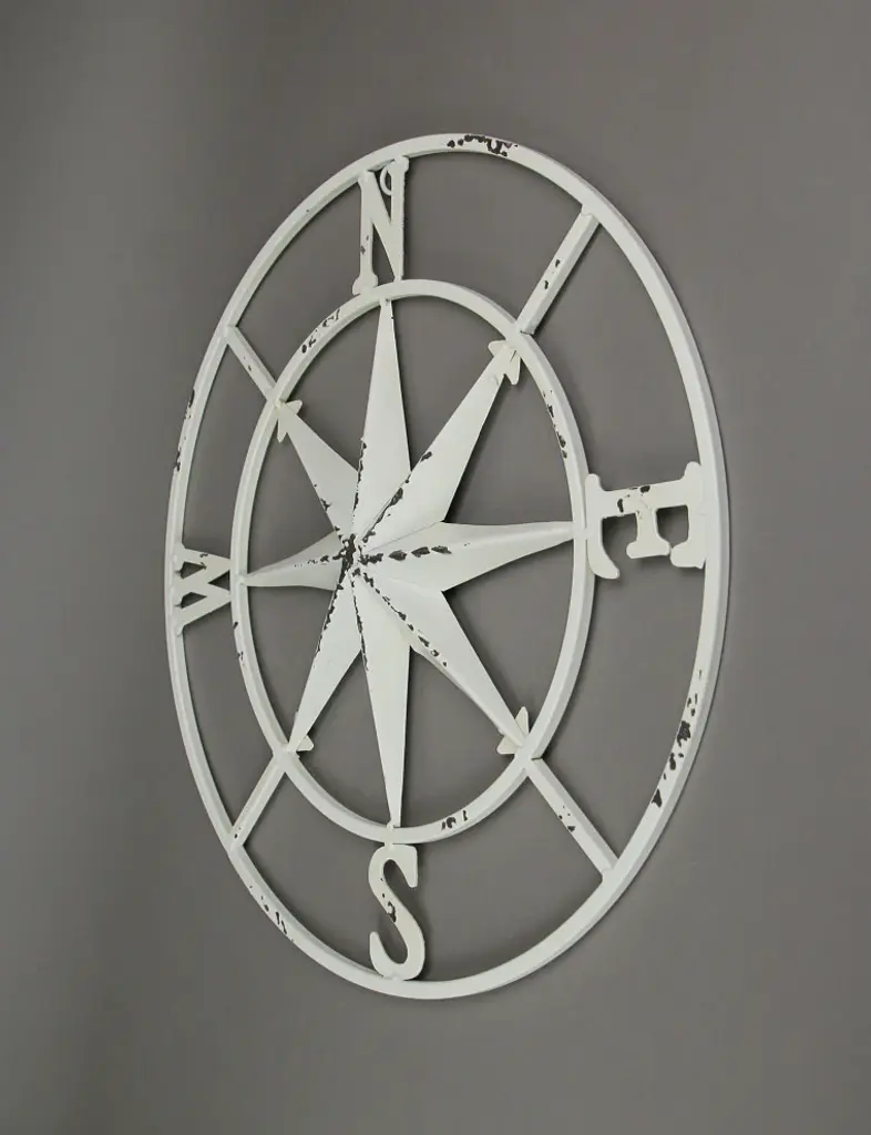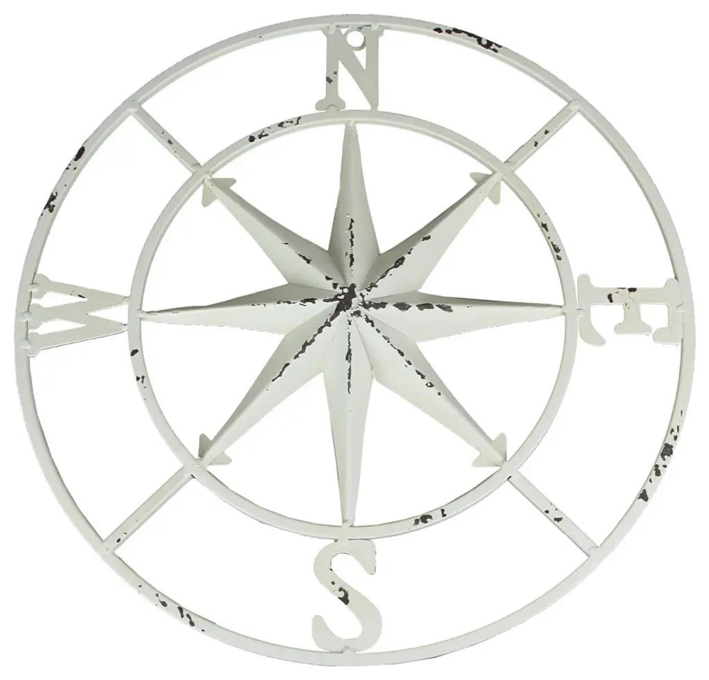 OVERALL SIZE - 18 inches in Diameter, 0.75 inches ThickDURABLE MATERIALS - Creatively Crafted of Metal in a Simply Stunning Compass Design Intended for Indoor or Outdoor DecoratingUNIQUE FINISH - eNAMEL cOATING with a Distressed Look that Works Well with Any Nautical or Coastal Home Decor ThemeEASY TO MOUNT - Arrives Ready to Hang From a Single Nail, Decorative Ribbon or String as is or You Can Embellish it with Other Decorative Items Such as Faux Flowers or String LightsGRAT GIFT IDEA - For Yourself, or Your Adventure Loving Friends and FamilyEven if you don''t decorate in a nautical style, this 18-inch diameter compass rose wall sculpture adds a simply elegant touch to your décor. It''s versatile and can be used indoors or outdoors. It''s made of metal and given a distressed look. The original compass rose points to winds that previously guided sailing ships at sea, and though this rose won''t actually tell you which way the wind is blowing, it''s sure to navigate some interest your way hanging on a garden fence or pool or patio wall. If you don''t want to hang it on the wall, you can let it lean against it on a wall shelf or side table, or you can use it in your yard landscape.