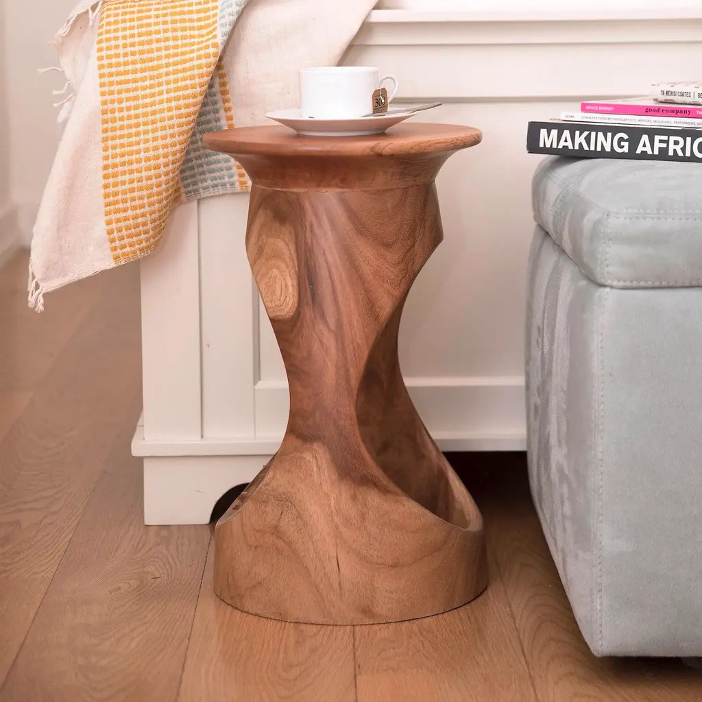 This Djembe drum side table is inspired by the shape of a Djembe drum, which was originally created by the Mande people in Mali before spreading throughout West Africa. Each Djembe African accent table is individually carved from reclaimed cedar wood sourced from the woodlands of Ghana. This drum side table is a great spot to place a morning coffee or an afternoon cocktail as you relax.