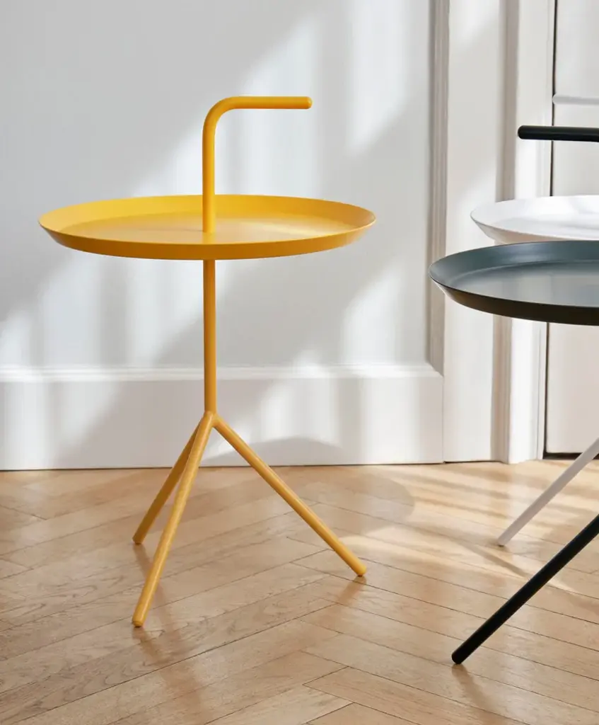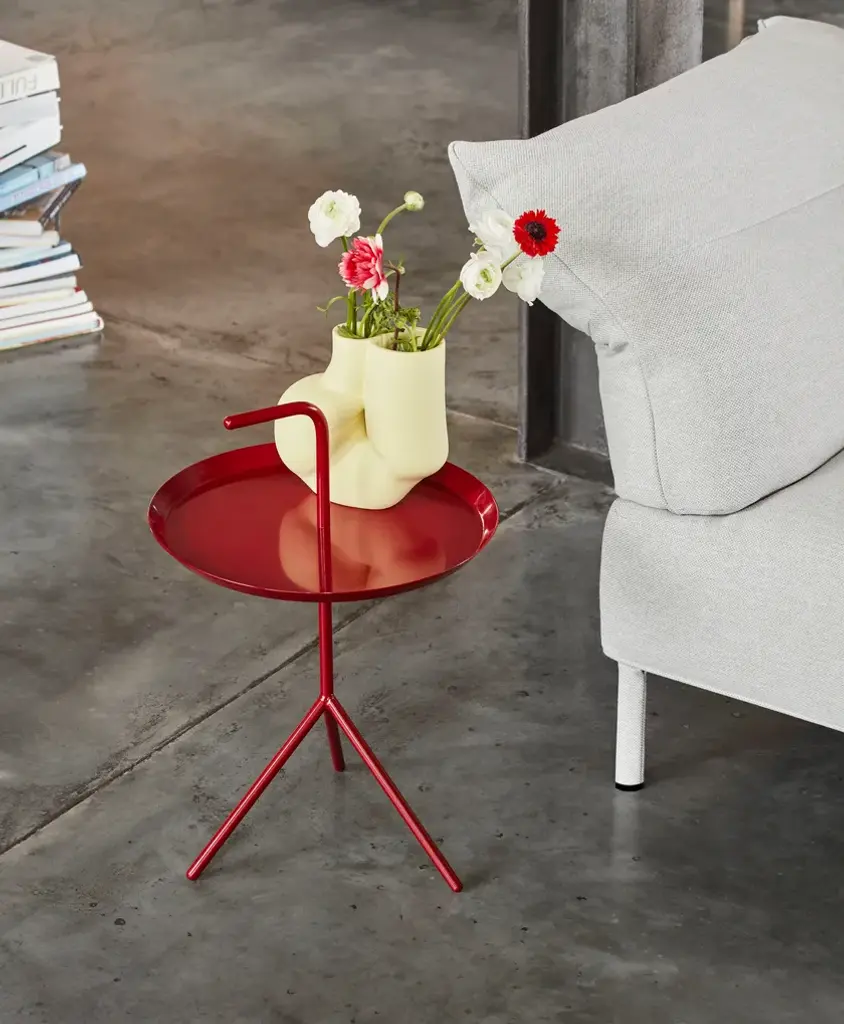 Thomas Bentzen’s portable side table is aptly named ‘Don’t Leave Me’. Abbreviated to DLM, it features a convenient handle that allows the metal table to be carried from room to room. Although it has a lightweight and portable structure, the three slanted legs provide great stability. Available in two sizes, the DLM and DLM XL make functional alternatives to traditional coffee tables. Suitable for inside use in most home or office environments.