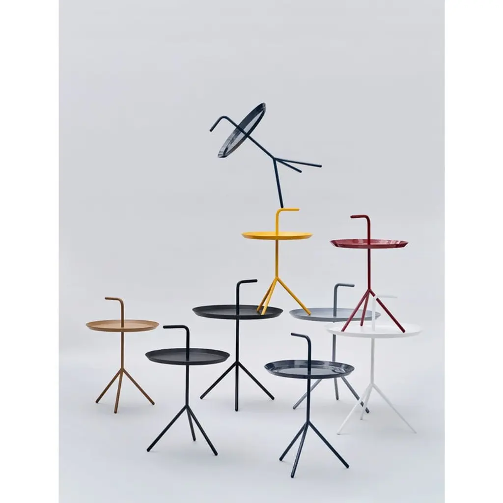 The DLM table, designed by Thomas Bentzen for HAY, got its name from the words Don't Leave Me. The name makes the idea behind the side table obvious – it invites you to bring the table along! The DLM table is like a tray with legs and a handle, enabling you to bring your coffee cup as well as the table along when moving around the house. The DLM table is a refreshing alternative to traditional coffee tables, which are often large, heavy and immobile. The friendly and fun little table is perfectly suited for modern life and interiors.