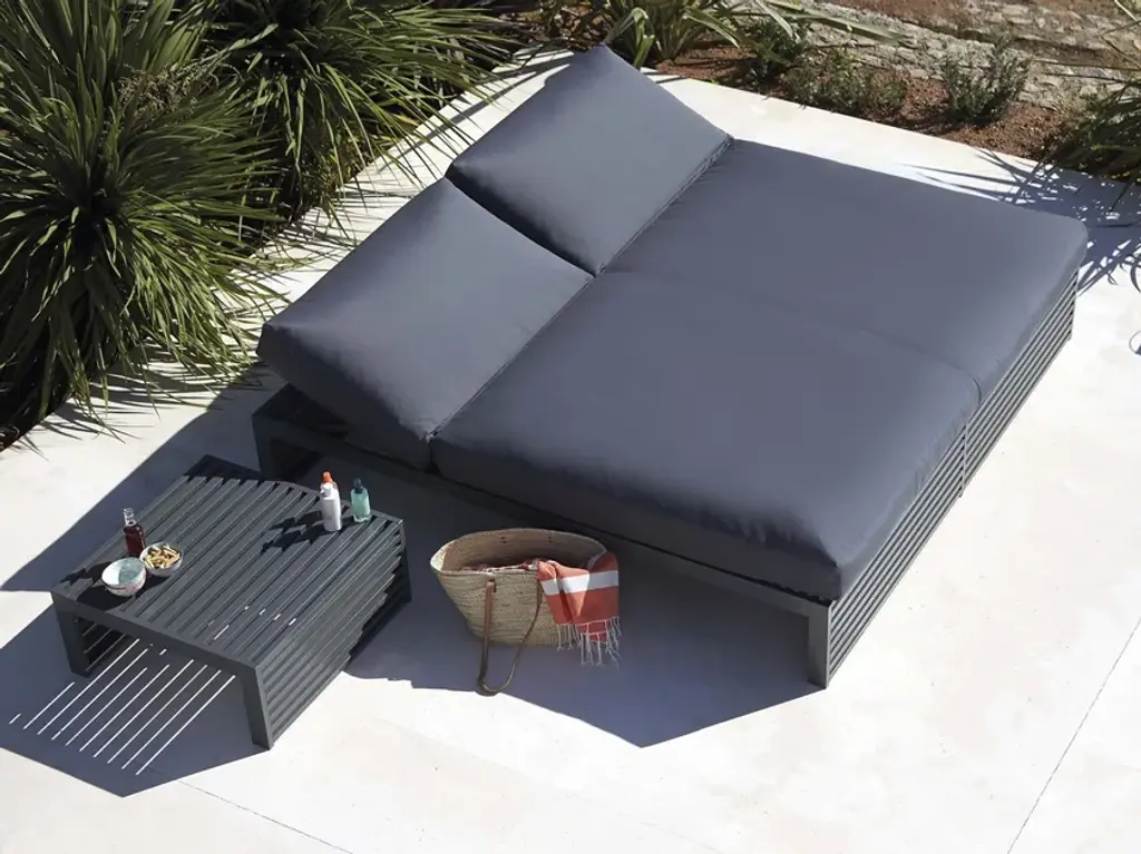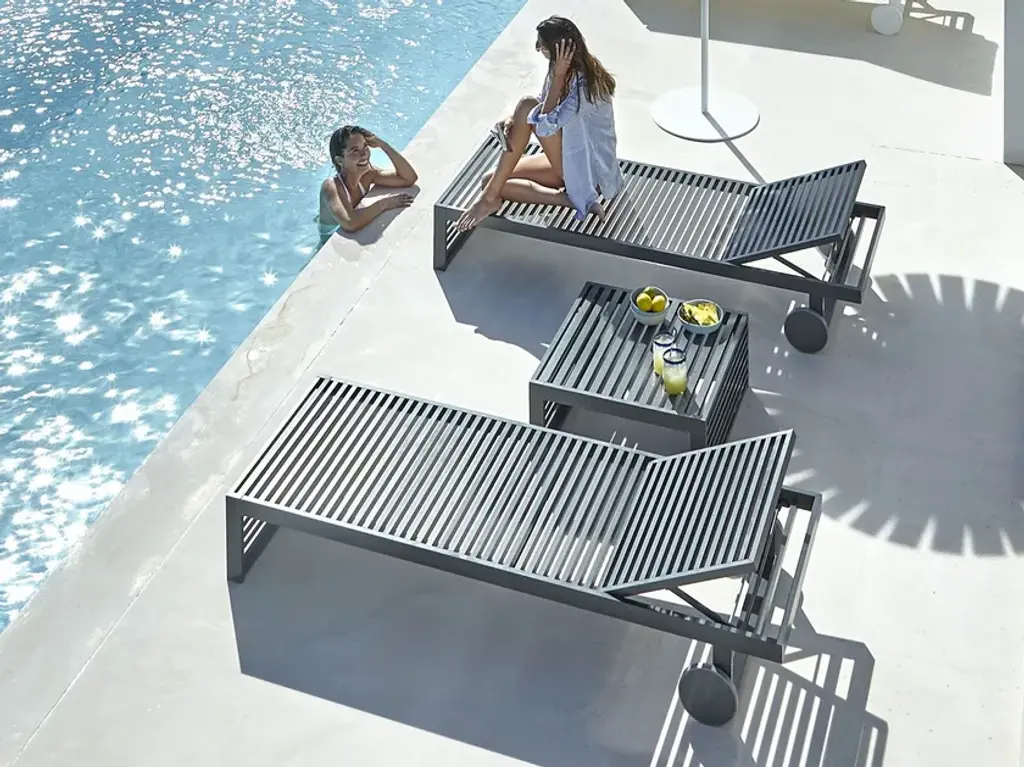 “I have always felt attracted by the patterns of light and shadows filtering through Mediterranean shutters, as well as by the work of certain architects from the Far East who work with wooden slats and bamboo cane. DNA is an outdoor furniture collection that reinterprets the essence of these horizontal shapes.”José A. Gandía-BlascoDNA is a collection of outdoor furniture inspired by the subtle play of the modulations of light and shadows filtering through Mediterranean shutters and it praises the shadows of Japanese aesthetics in traditional and contemporary architecture – the positive and the negative dispossessing any superfluous adornment.Made of anodized or thermo-lacquered aluminium profiles. Polyurethane foam rubber covered with water-repellent fabric. Removable fabric cover.Collections colour sample: anodized, white, agate grey, cement grey, sand, bronze, wine red, blue grey, grey blue, signal grey, anthracite and black.