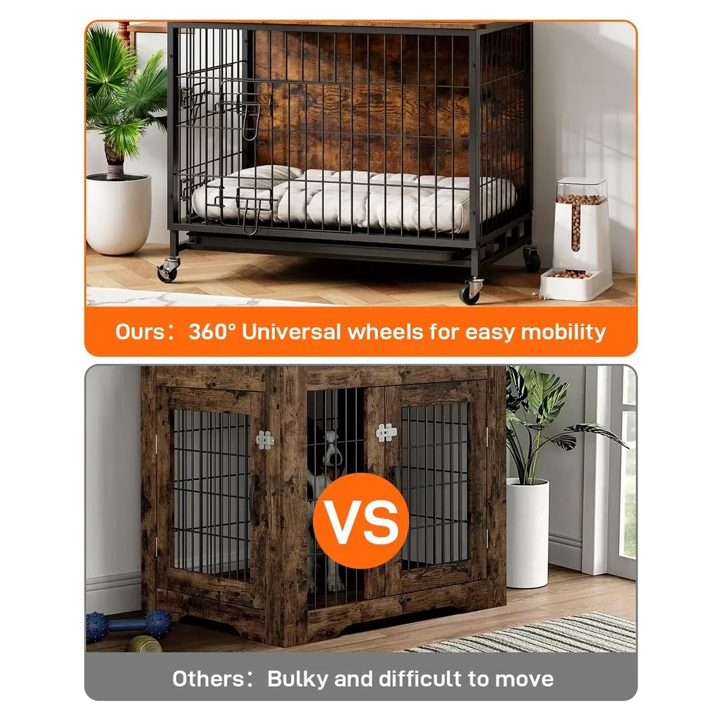 1. Slide-Out Tray for Simplified Cleanups: Maintain cleanliness effortlessly with a removable tray that slides out for rapid cleaning. This feature supports a neat, inviting space for your large dog without constant maintenance hassles.2. Chic Multi-Use Kennel: More than just a kennel, this unit also serves as stylish furniture. Its robust design supports various uses, blending seamlessly with your existing décor while providing a secure area for your dog.3. Robust Construction, Optimal Ventilation: Constructed to support larger dogs, this kennel provides a strong frame and excellent ventilation. The design ensures a spacious and airy environment, offering a comfortable and secure retreat for your pet.4. Easy to Move and Stabilize: Featuring wheels for convenient maneuverability, this kennel can be effortlessly transported across different rooms. Lockable wheels ensure that it remains fixed in your desired location.5. Streamlined Setup Process: Designed for easy assembly, this kennel includes detailed instructions and all the necessary tools. The process is straightforward, enhancing your experience with added convenience for setup and use.
