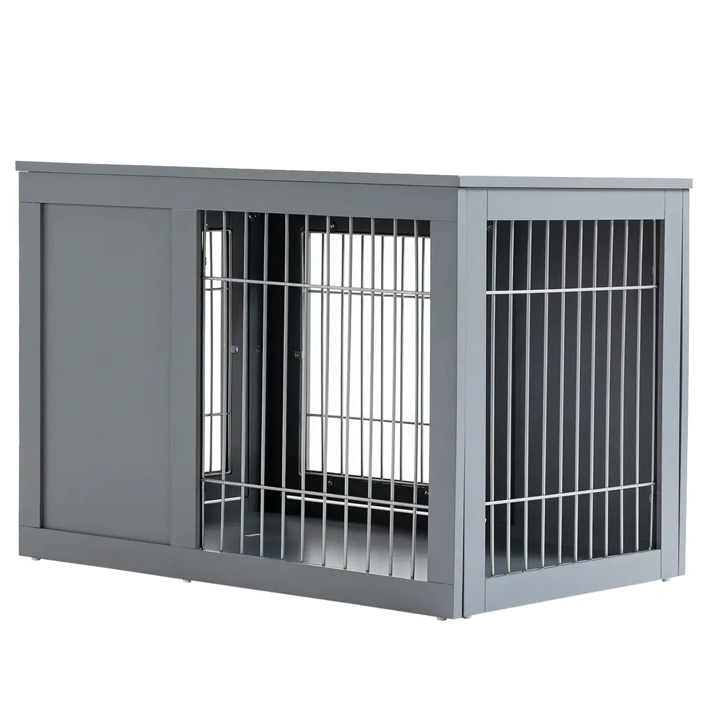 Experience the perfect blend of functionality and style with this multifunctional dog crate, designed to serve as both a secure space for your pet and an elegant side table. Constructed from a durable combination of steel and wood, it seamlessly integrates into your living space while providing ample room for your furry friend.Features:Product Dimensions:
