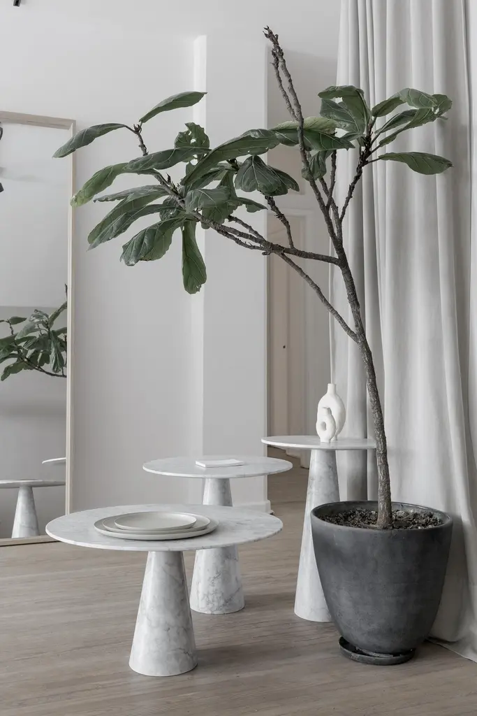 Side table in carved Veneciano white marble. Available on request in Monterrey black marble. Production time: 6-8 weeks for items without marble / 13-14 weeks for marble pieces. Shipping +10 additional business days. Casa Quieta uses natural materials such as woods, stones, fabrics etc. These materials may vary in tone, veining, and cavities due to their natural origin. This is part of the inherent beauty of materials and is not considered a flaw. Due to the artisan nature of our production process, there is a +/- 3mm measurement tolerance.
