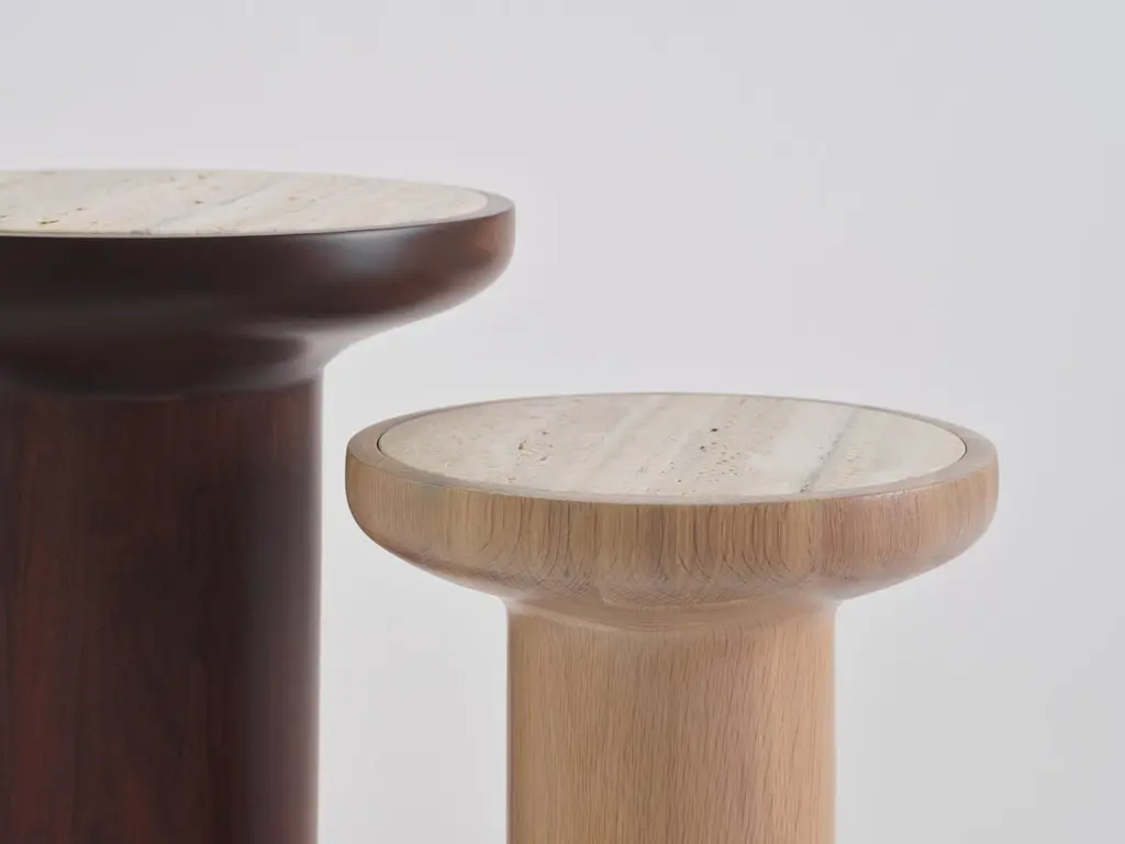 Like a true friend—Doost means just that—this piece is built to be by your side for life. Topped with natural stone, each base is hand-turned from solid wood, giving it presence, warmth, and lasting character.Prices exclude packing.Listed price is for the Doost 18" Side Table- in Solid Walnut, White Oak, or Ebonized Oak, with a Travertine top.