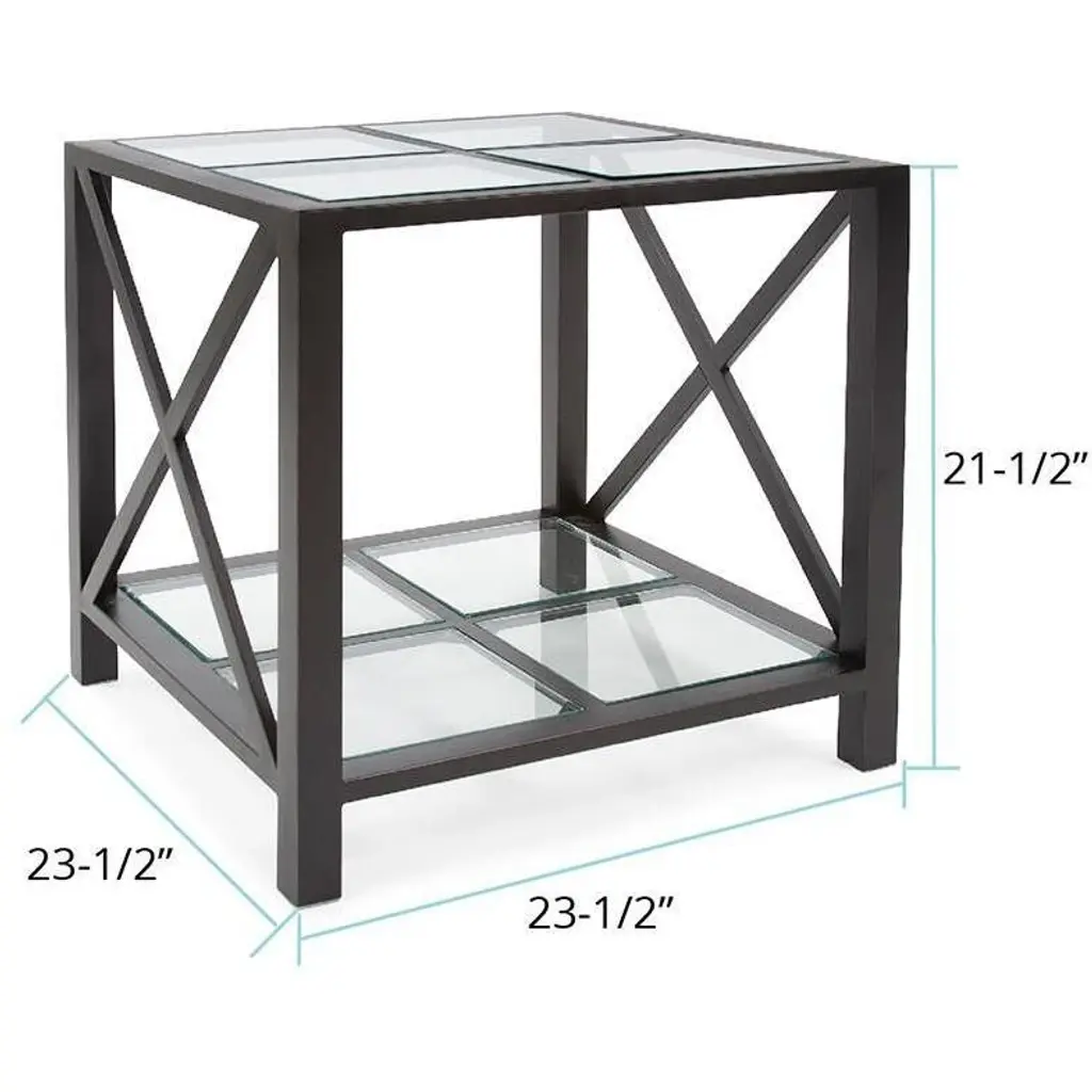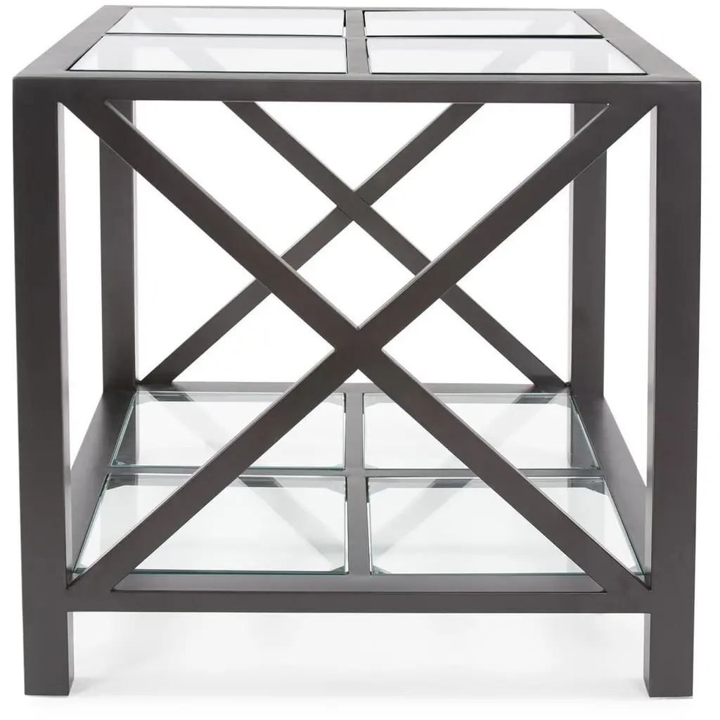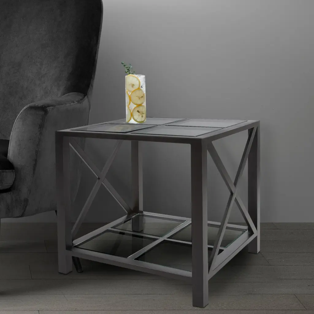 The Doshi side table features a brushed black nickel finished stainless steel frame with multiple tempered glass shelves. A perfect compliment to your favorite reading chair or as an anchor to a seating area, this side table adds an element of style and function to any location in you home. Can also be paired with the Doshi side table to complete the designer look you need.