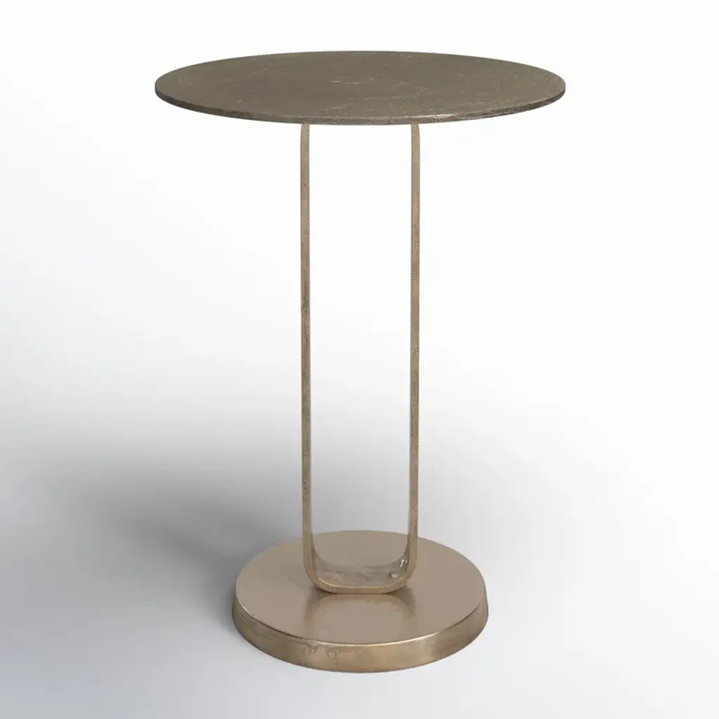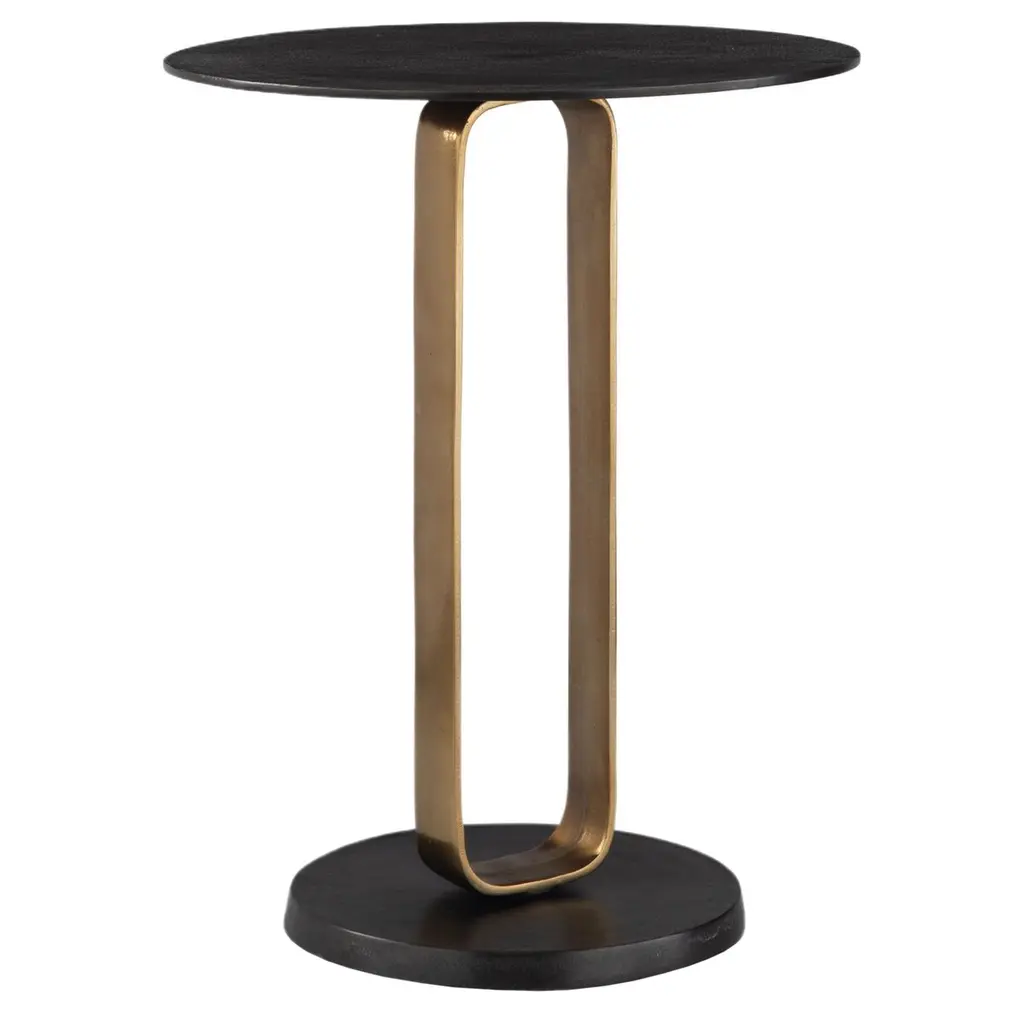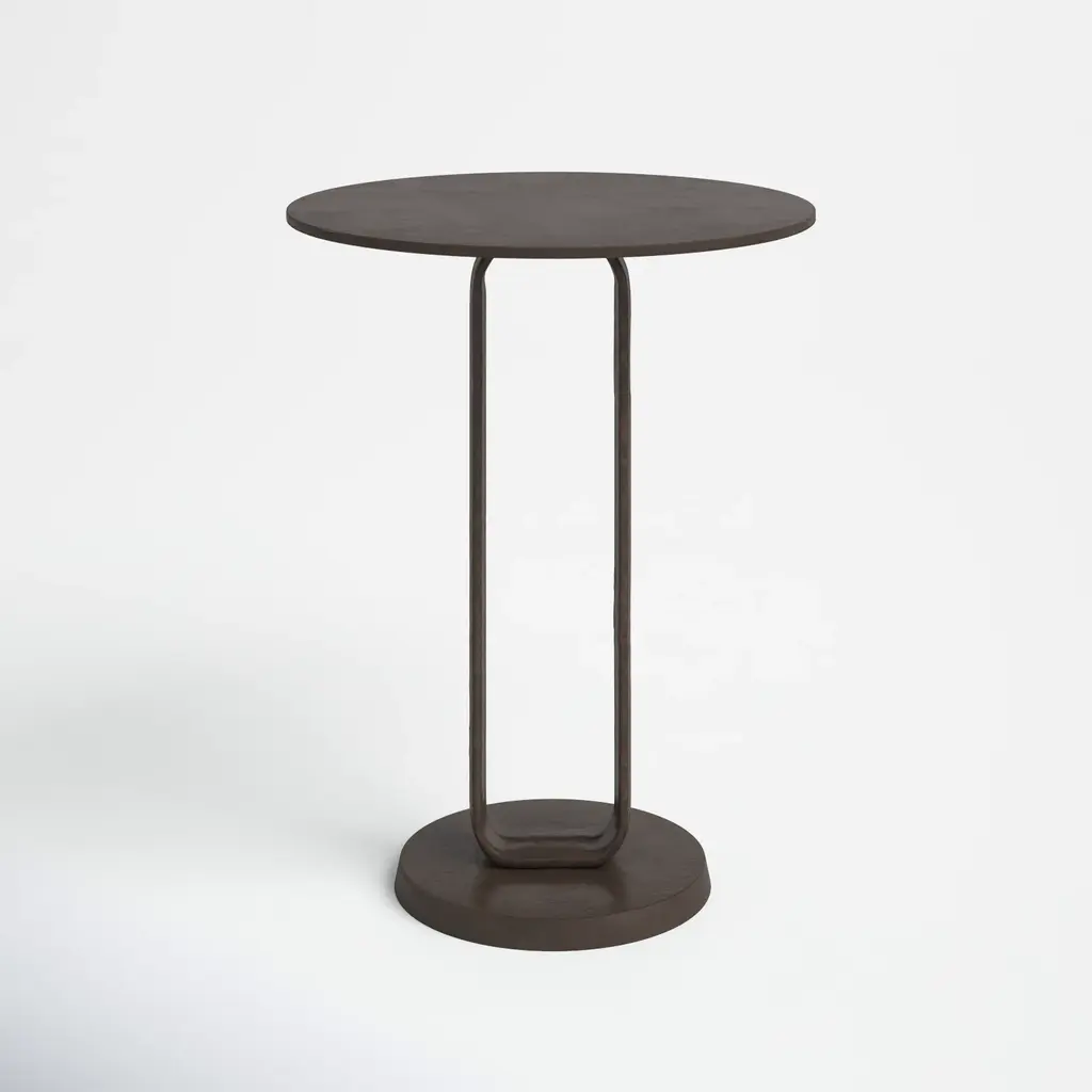 Precise curves with modern presence. Rounded base and tabletop of antique rust-finished aluminum are connected via a shapely ring, for an open look and fun blend of scale and proportion. Safe for outdoor spaces. Cover or store indoors during inclement weather and when not in use.