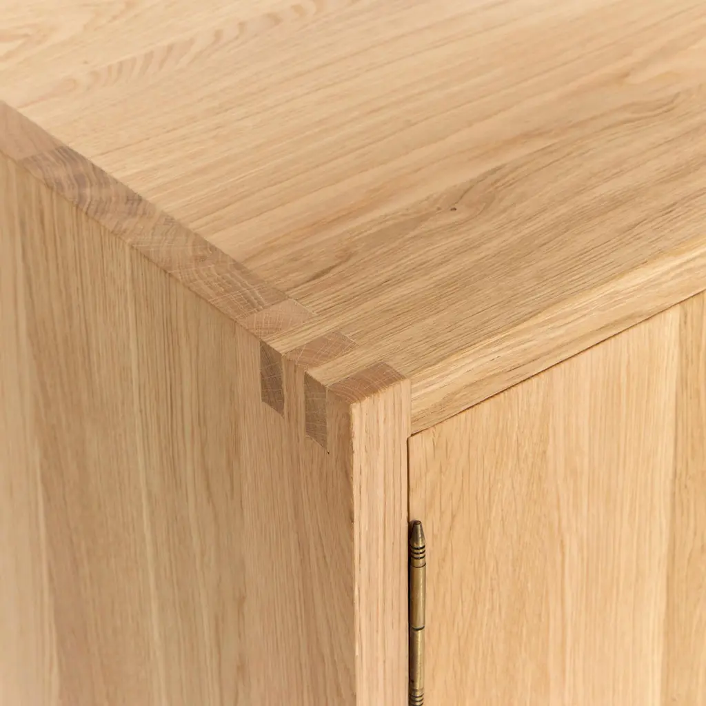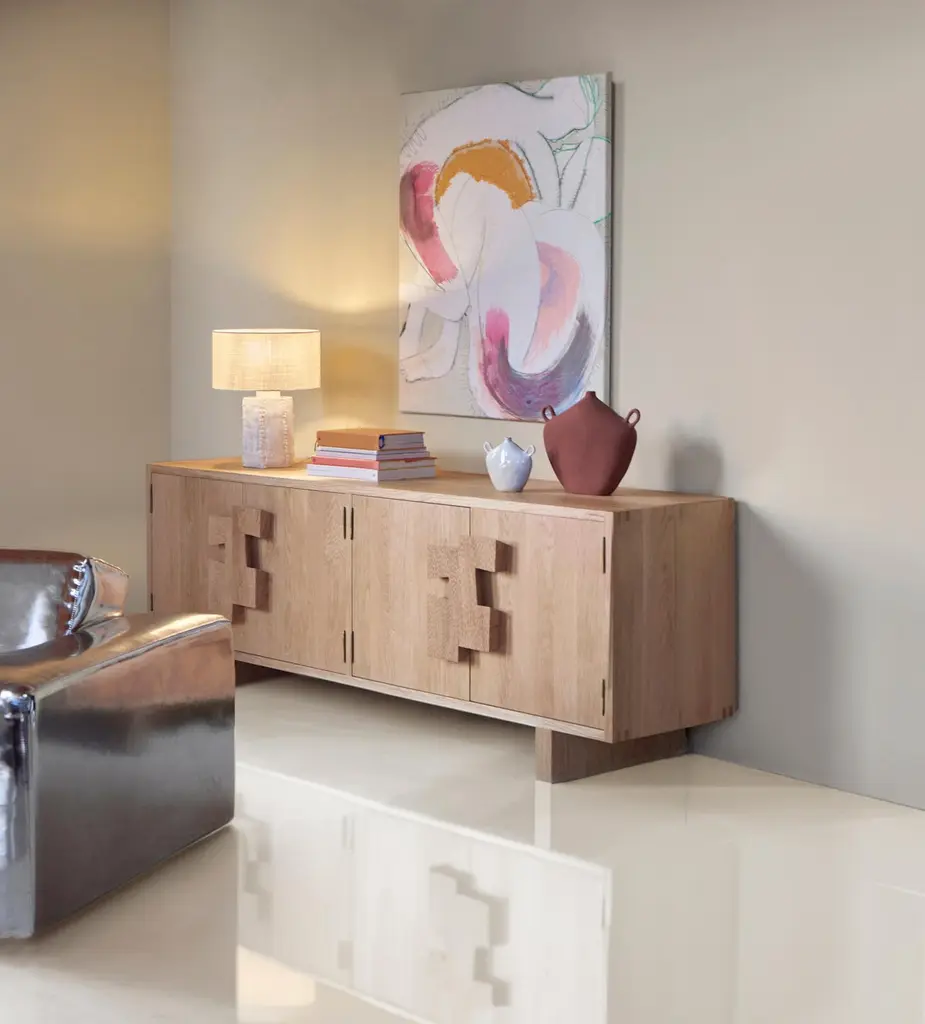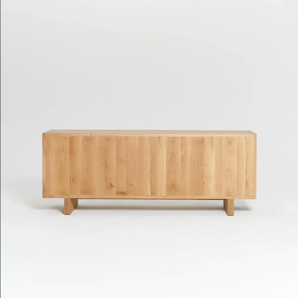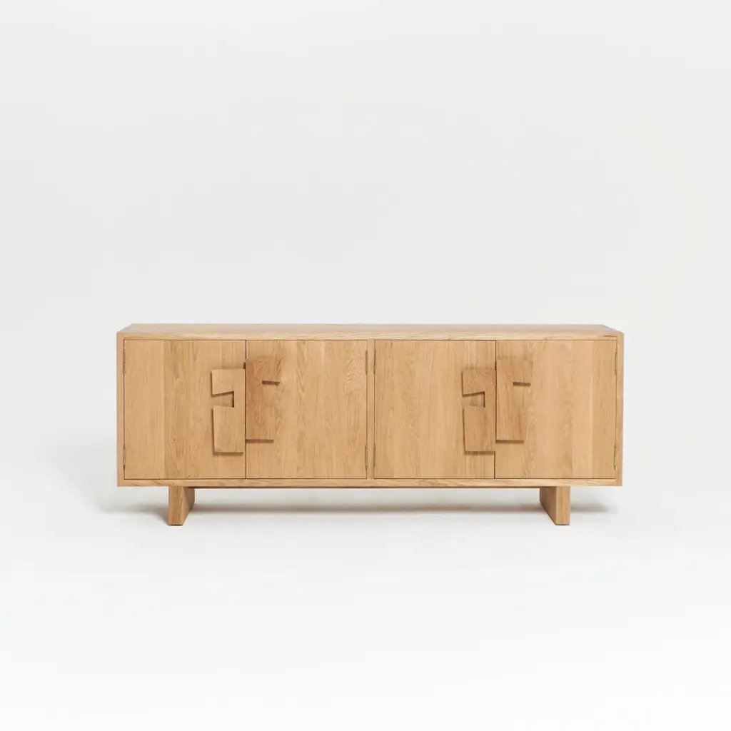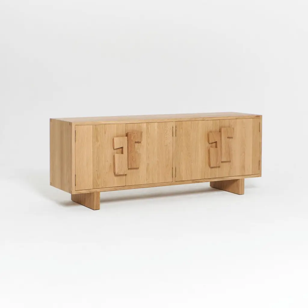 "Douro Credenza"Designed by Project 213A in 2023Handmade by skilled artisans in solid oak. The cabinet features double doors with handles and legs decorated with a hand carved texture. This credenza, with is dominant geometric handles is part of the "Douro" collection which also features a cabinet and a bed side table.Bespoke dimensions and shelves upon request.Production lead time: 6-8 weeks Rates vary by destination and complexity.Customs Duties & Taxes May ApplyShips from: Portugal ReturnsProject 213A can only accept returns for in stock furniture, all furniture made on request and items returned without original packaging are non-refundable.Please note that delivery charges will not be refunded and that all costs for return shipment will be covered by the customer.