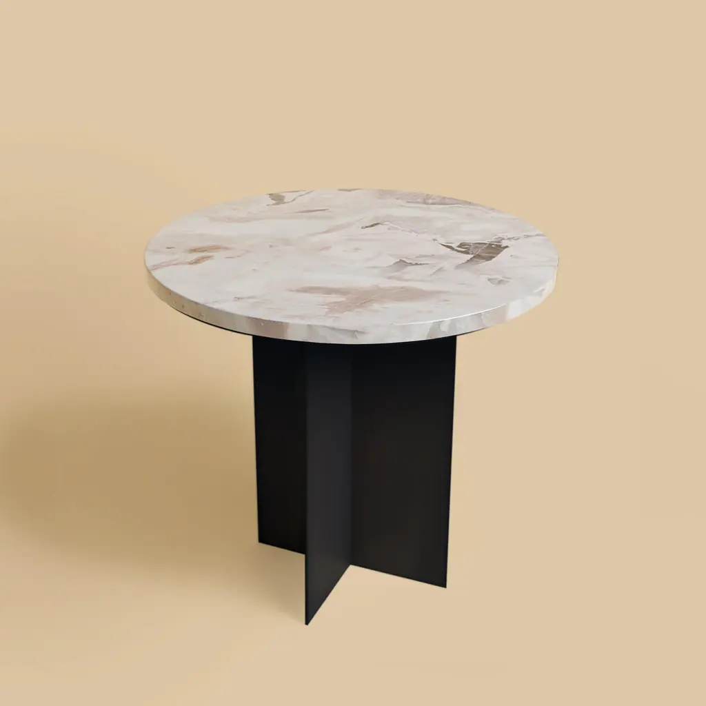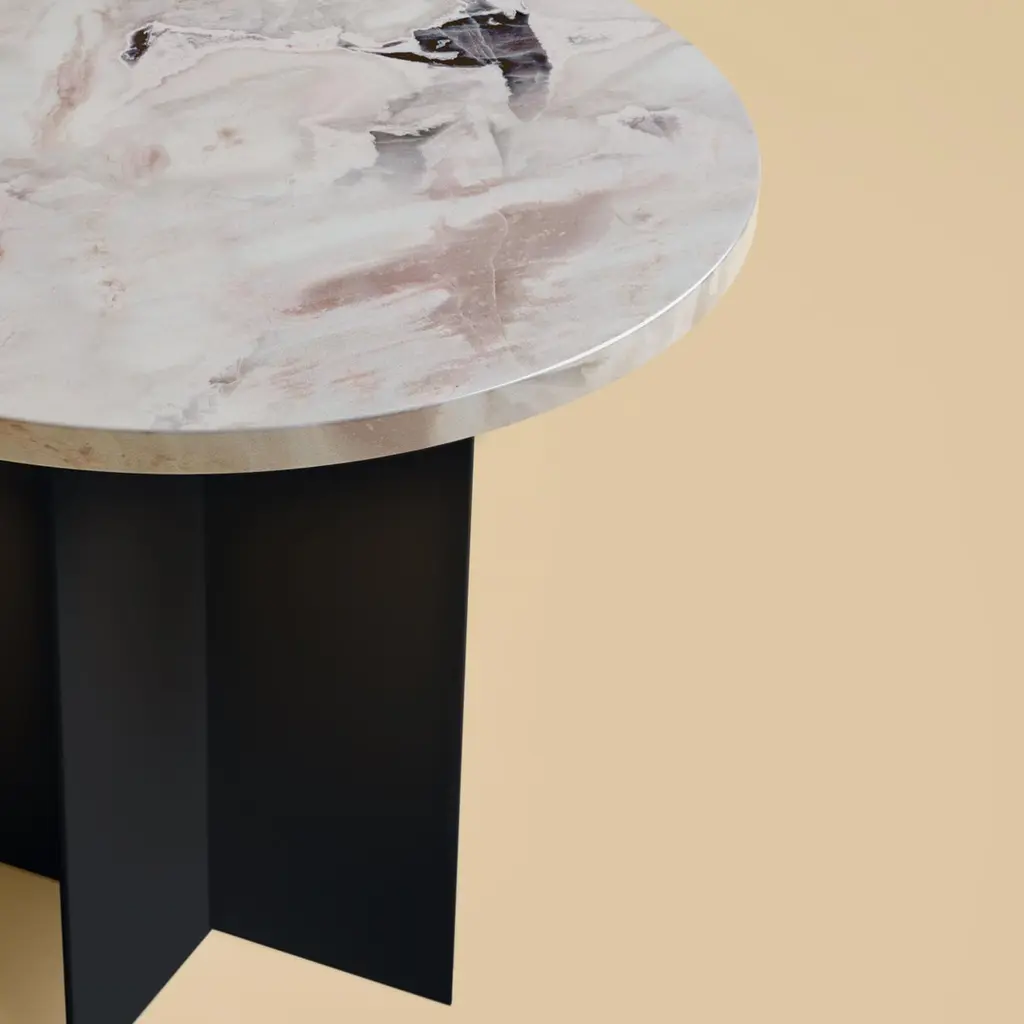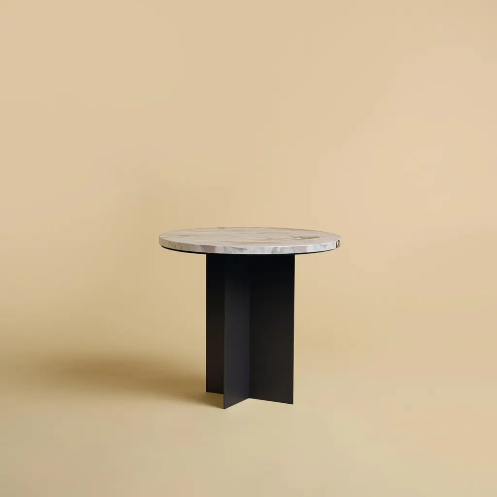 The Baker coffee table is produced with a powder-coated metal base and a top in Dover White marble. The top is white color and circular and has a diameter of 45cm, while the base is obtained by gluing black metal plates perpendicular to each other.Enhance your living space with the Baker Side Table, crafted from stunning dover white marble and sleek metal legs. This elegant dark side table combines bold, natural stone with modern metal accents, creating a chic and versatile piece that complements any decor. Perfect for adding a touch of luxury to your bedroom, living room, or office, the Baker Side Table offers both style and durability, making it an essential addition to your home.The piece is designed by Lebanto and is Made in Italy in small familiar workshop. Attention to details and superior material is what distinguish Lebanto products.