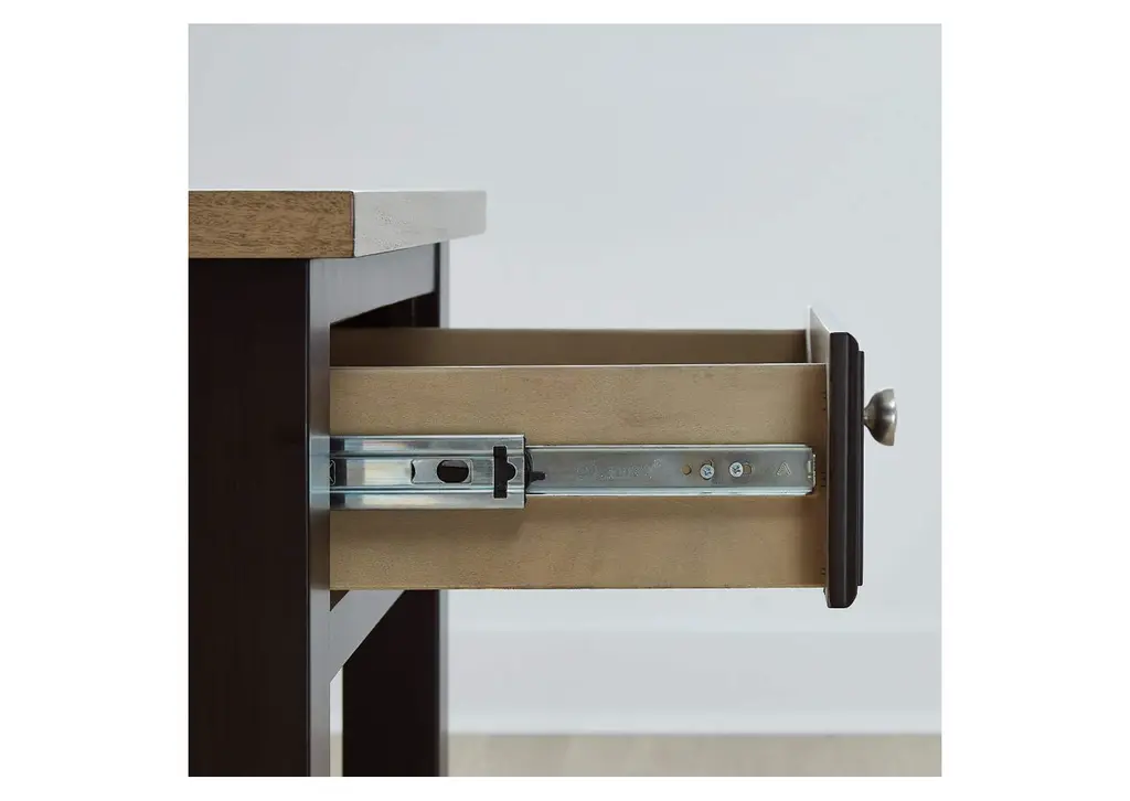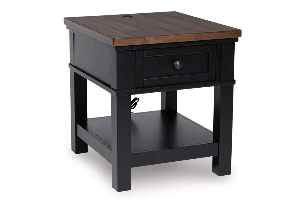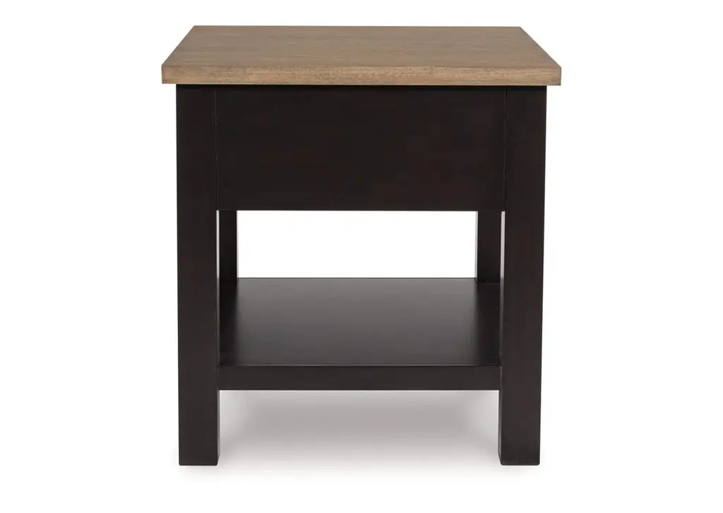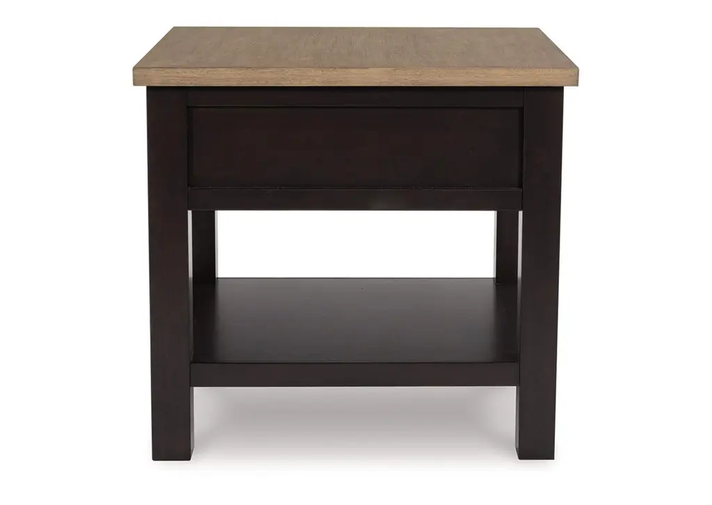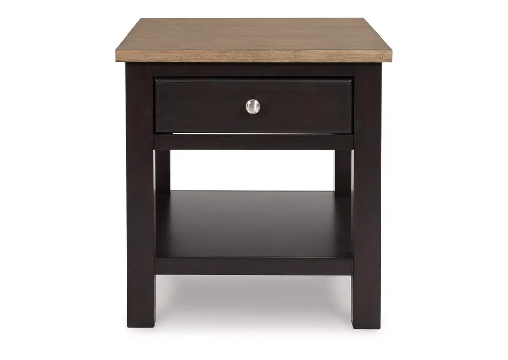 When you’re styling your living room, convenience is key. With the Drazmine end table, casual flair meets can’t-miss function. Tired of tracking down lost remotes? A handy storage drawer keeps your entertainment essentials close. This fashionably functional piece pairs a dark chocolate brown with a light wood tone, complementing a variety of color palettes. Weight 50.000 lbs. (22.5kgs.)