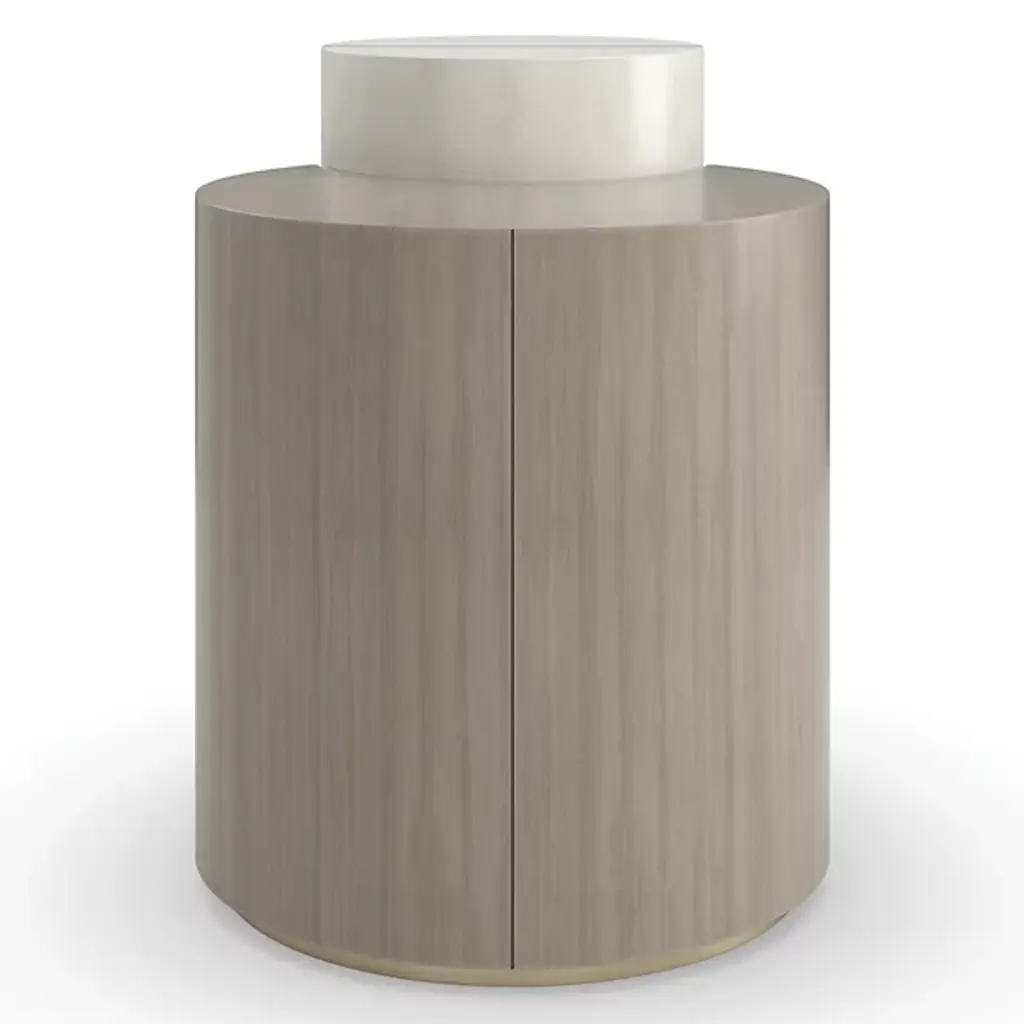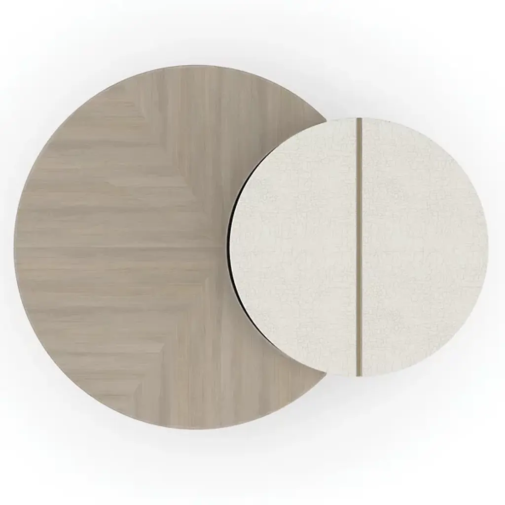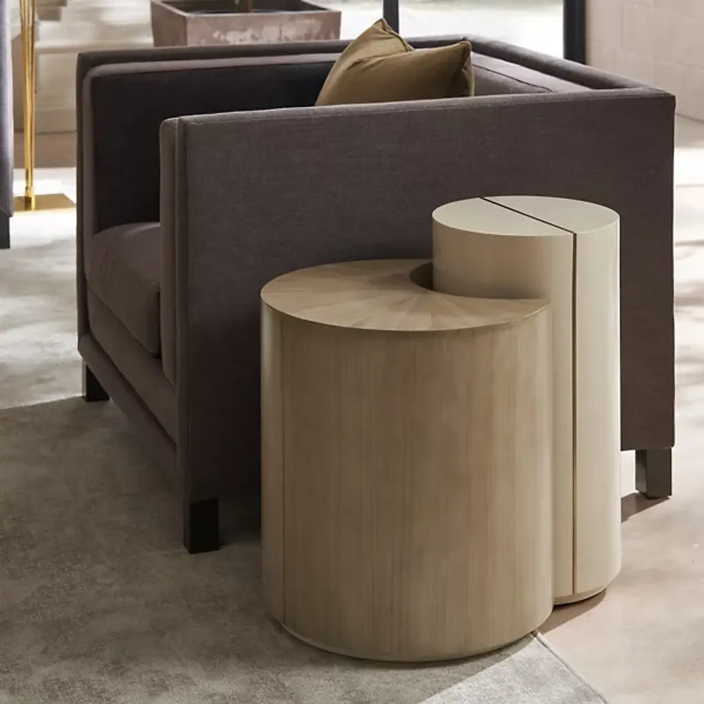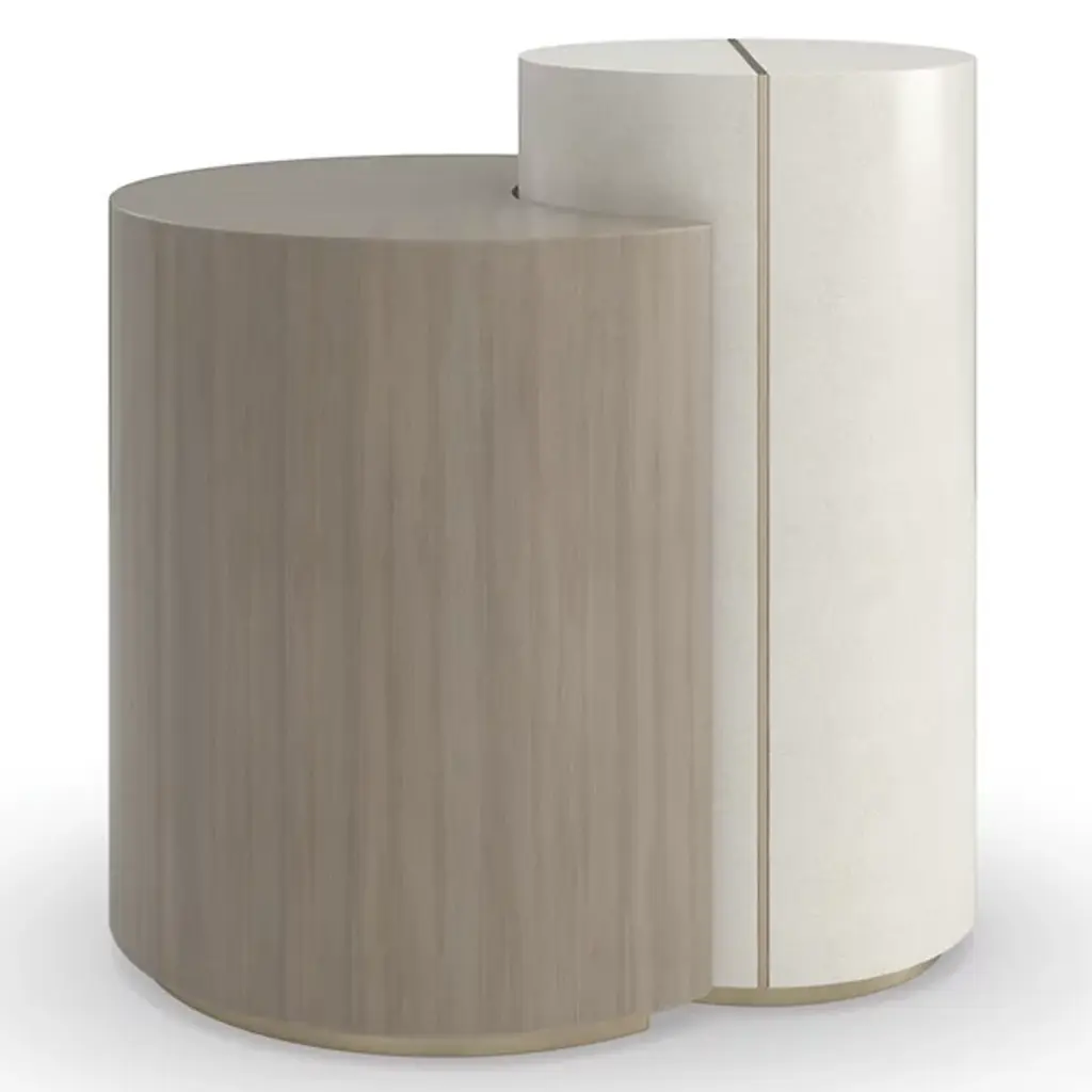 The Duality Side Table, Set of 2 from Caracole is a celestial-inspired duo that brings sophistication and versatility to your living space. Composed in part of refined metal, the set comprises two distinct pieces. A tall cylinder features a decorative inlay, while a crescent shape highlights its linear wood grains. Together, they form a cohesive and contemporary ensemble that can be styled to create a larger table or pulled apart for enhanced functionality and individual points of interest.