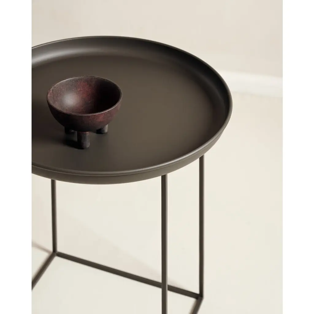 NORR11’s Duke side table is a modern and characterful tray table made of powder-coated steel. The Duke side table plays with basic geometric shapes, comprising a round tray top with edges and a sleek, rectangular base. The Duke table will easily find its place in any interior, be it a living room, lobby or bedroom, and the removable tray top allows you to use it also for serving food and drinks.