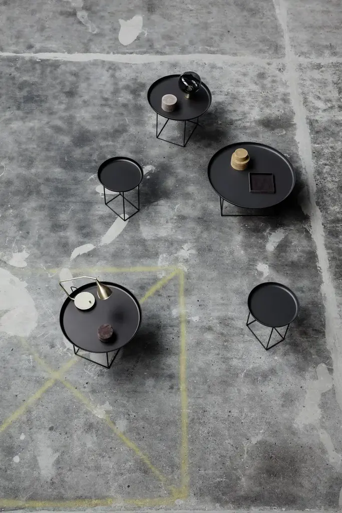 Made of powder-coated steel, the Duke table is a multifunctional piece of furniture that comes in three different sizes. The tray top lifts easily off its base and the base can be rotated for different heights. Combining all three sizes together creates a landscape complimenting any sofa.MATERIALTabletop made of spun aluminium and table base made of steel. Both powder coated.Non-slipping foam under tabletop.Colour variations: Bronze, Khaki Grey, Antique White, Earth Black, Stone