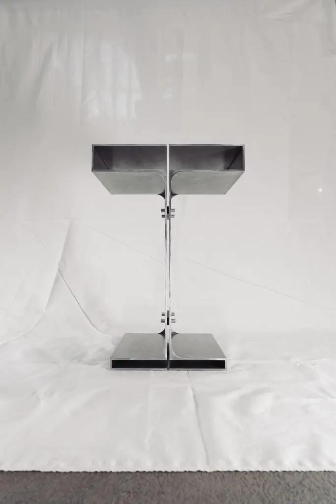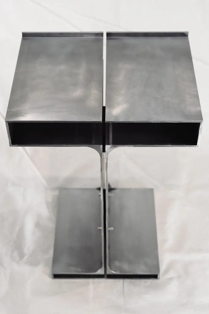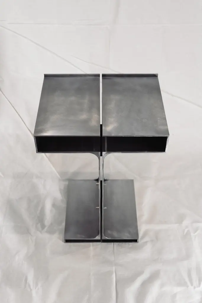Duo Simplicia Side Table by Justus Knut SchomannDimensions: W 38 x D 30 x H 85 cmMaterials: Brushed steel, waxed finish.Weight: 35 Kg. Justus Knut SchomannBorn in Cologne in 1999, Justus Knut Schomann is a passionate and driven individual. In 2021, he assumed the role of Personal Assistant to designer Mike Meiré, contributing to a dynamic professional environment. Justus showcased his design prowess at the IMM Trade Fair in 2024, further honing his skills in the vibrant field of Integrated Design. Driven by a commitment to innovative thinking and meticulous attention to detail, Justus aspires to create designs that are both visually compelling and enduring. His experiences as a Personal Assistant have provided valuable insights into the multifaceted world of design, preparing him for a promising career. Beyond his professional endeavors, Justus Knut Schomann is dedicated to continuous growth. His journey includes participation in the IMM Trade Fair, a testament to his proactive engagement with the broader design community. As he continues to explore the dynamics of human interaction with objects, combine ideas with experiences, and experiment with unconventional materials, Justus remains focused on designing products that leave a lasting impact. Whether collaborating with professionals in various fields, he is committed to enriching the creative landscape and shaping the future of design.